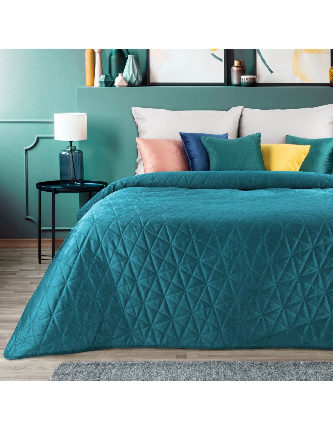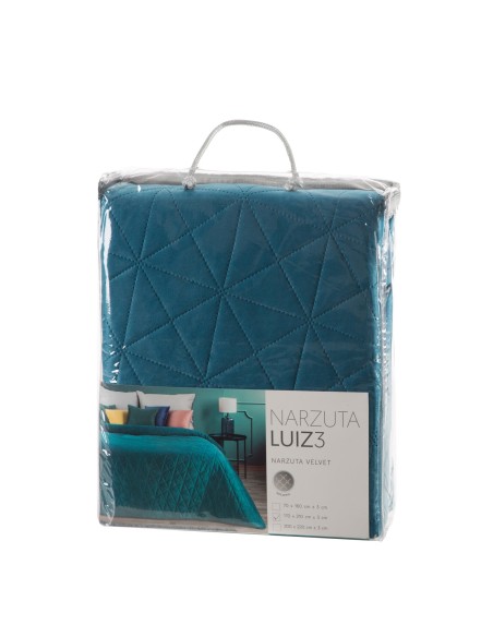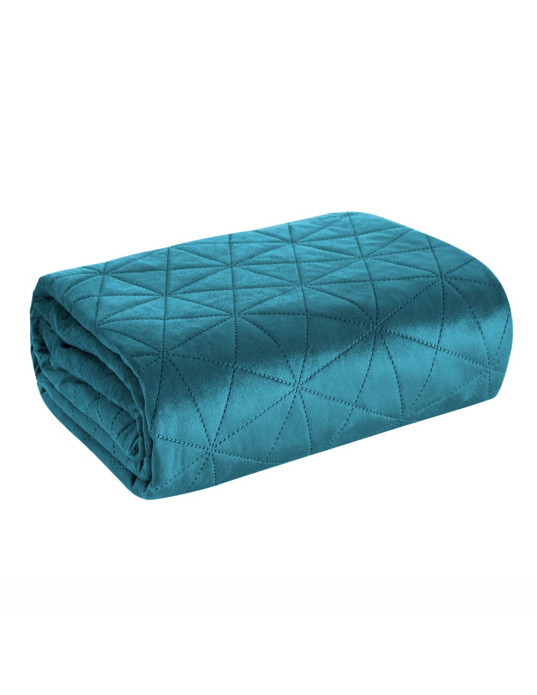 Narzuta welurowa,wykonana metodą hot press szerokość: 170 cm, długość: 210 cm, kolor: ciemnoturkusowy, Gramatura: 150+65+100 GSM, Skład: 100% poliester