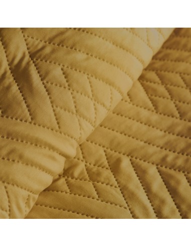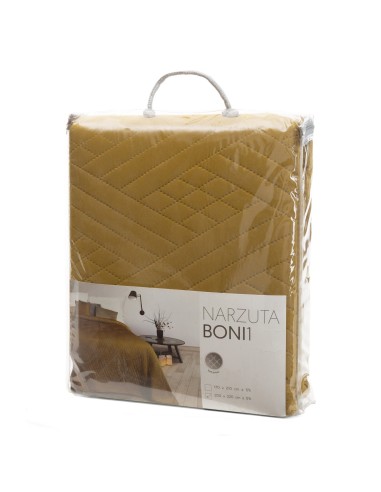 Narzuta jednokolorowa, wykonana techniką hot press szerokość: 200 cm, długość: 220 cm, kolor: musztardowy, Gramatura: 70 GSM, Skład: 100% poliester