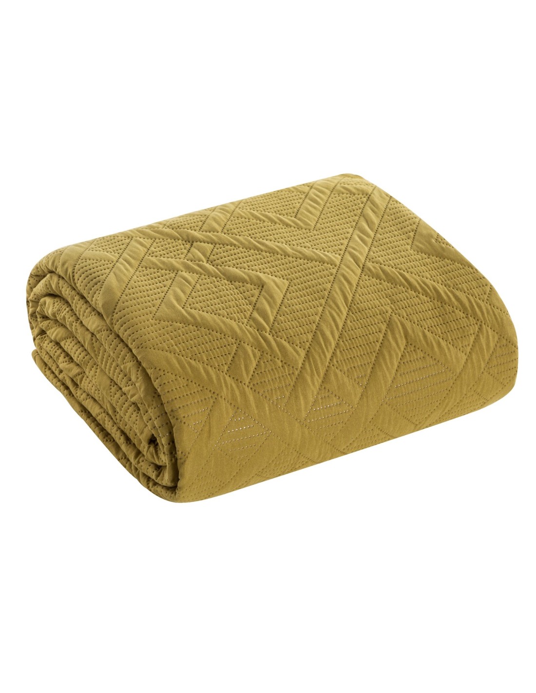 Narzuta jednokolorowa, wykonana techniką hot press szerokość: 220 cm, długość: 240 cm, kolor: musztardowy, Gramatura: 80+120+70 GSM, Skład: 100% poliester
