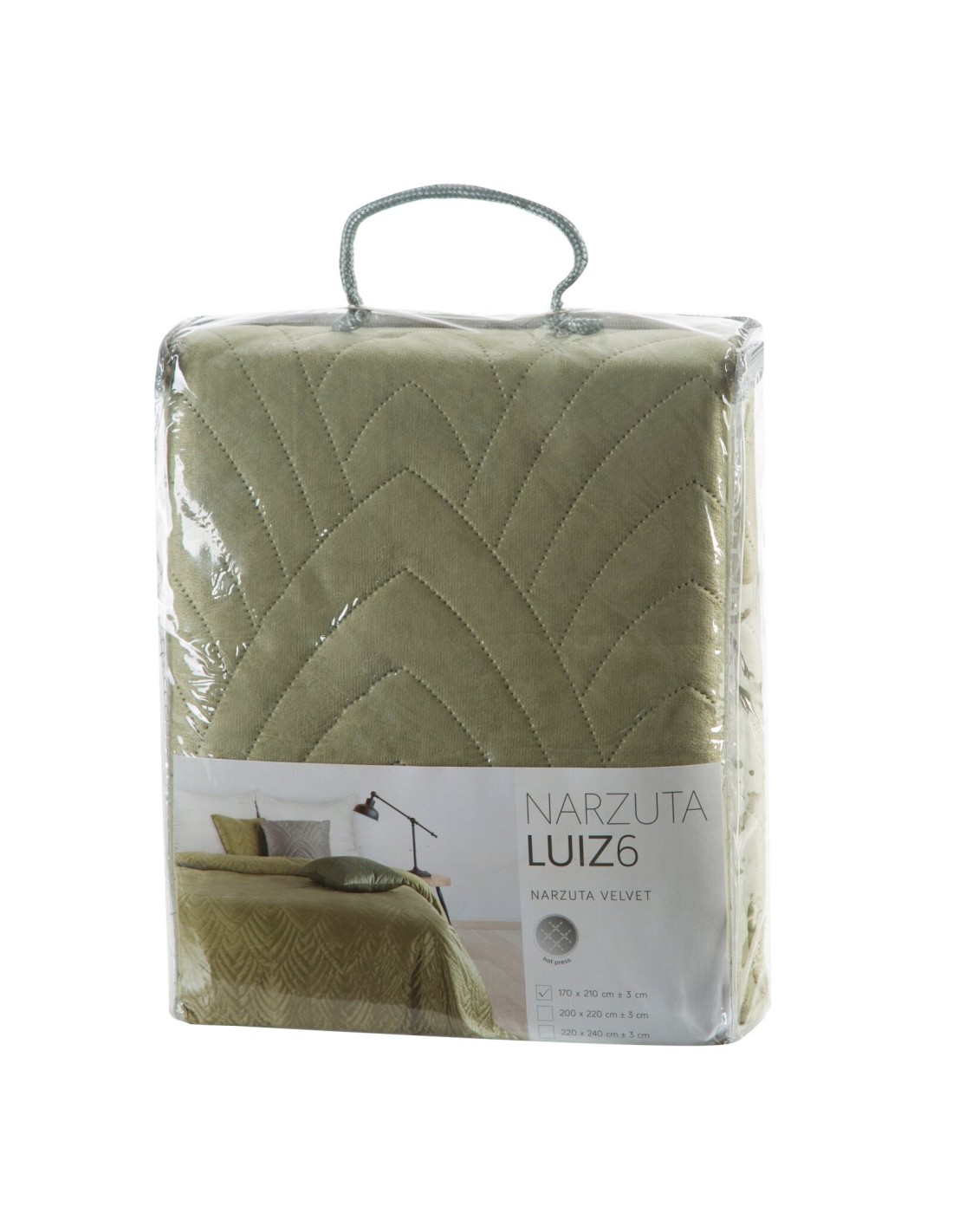 Narzuta welurowa,wykonana metodą hot press szerokość: 200 cm, długość: 220 cm, kolor: jasnozielony, Gramatura: 150+65+100 GSM, Skład: 100% poliester