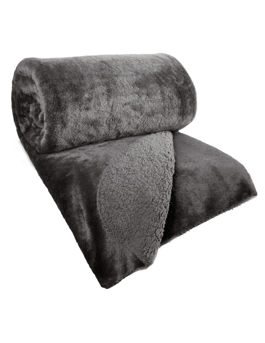 Futrzana narzuta szerokość: 220 cm, długość: 240 cm, kolor: stalowy, Gramatura: 430 GSM, Skład: 100% poliester