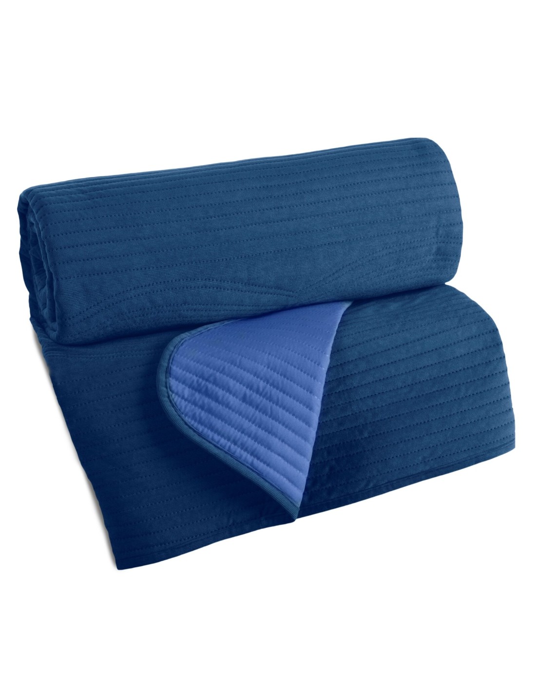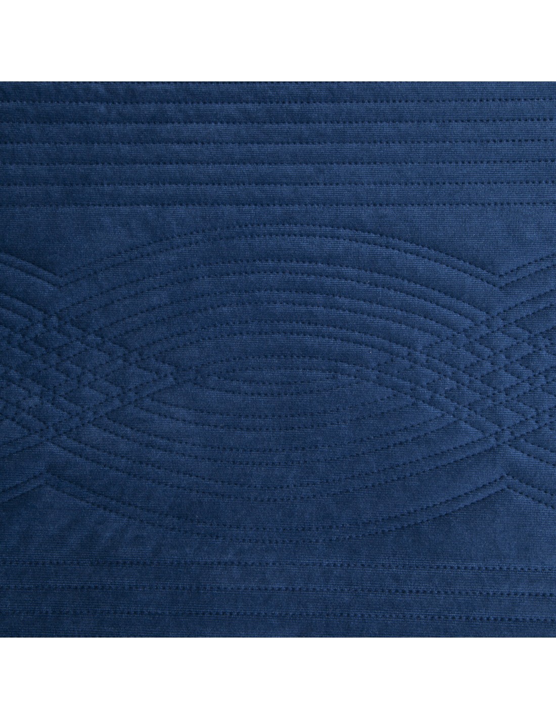Narzuta welwetowa ozdobiona geometrycznym wzorem szerokość: 220 cm, długość: 240 cm, kolor: granatowy, Gramatura: 200 GSM, Skład: 100% poliester
