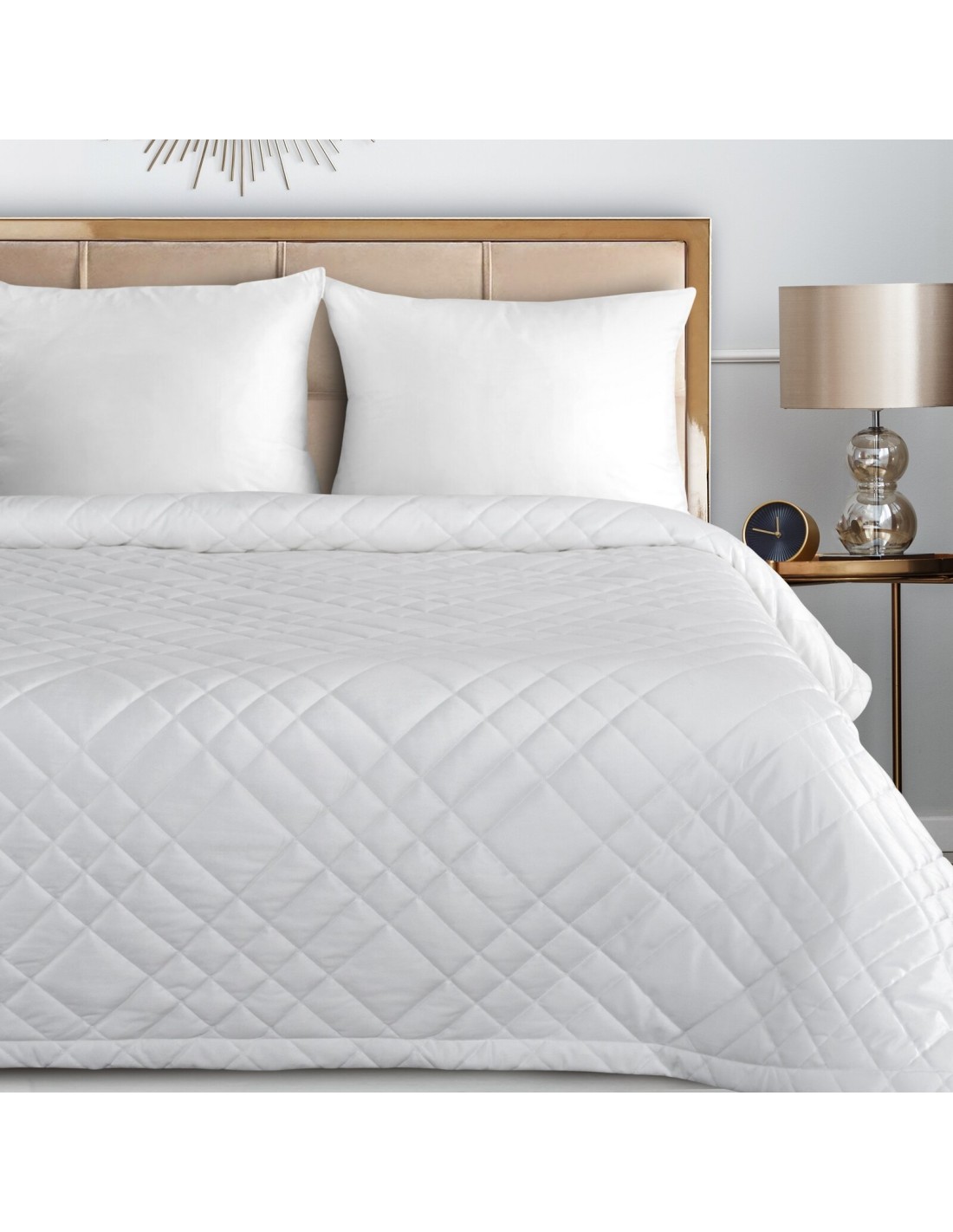 Welwetowa narzuta z przeszyciami szerokość: 200 cm, długość: 220 cm, kolor: biały, Gramatura: 250 GSM, Skład: 100% poliester