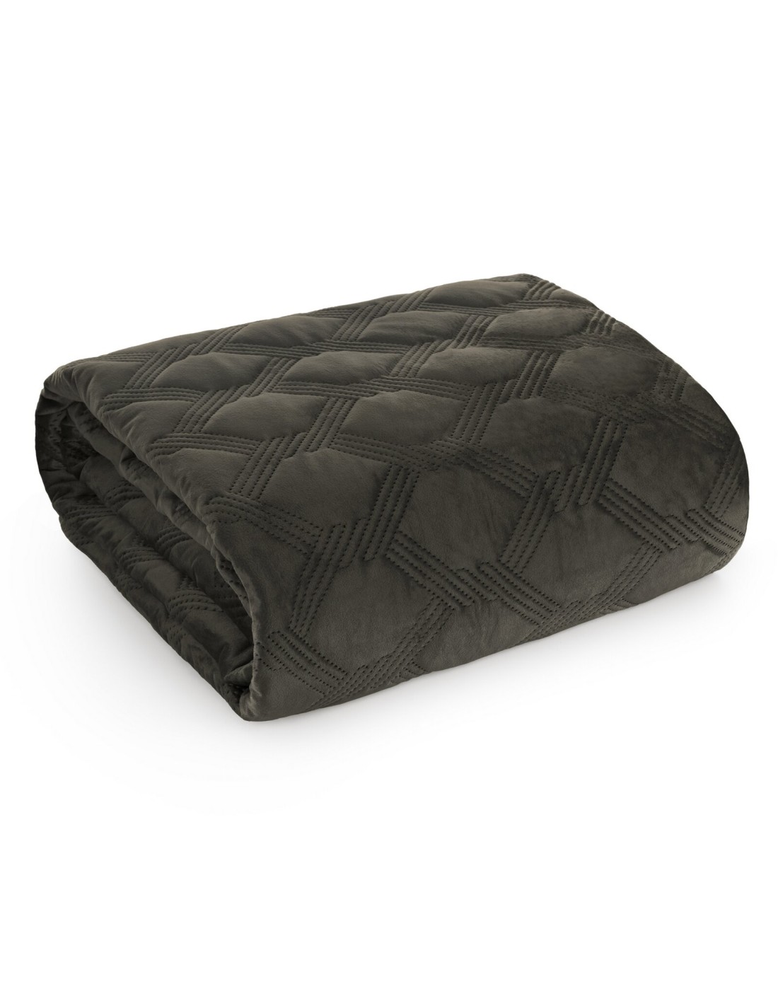 Narzuta welwetowa, wykonana techniką "hot press" szerokość: 200 cm, długość: 220 cm, kolor: stalowy, Gramatura: 250 GSM, Skład: 100% poliester