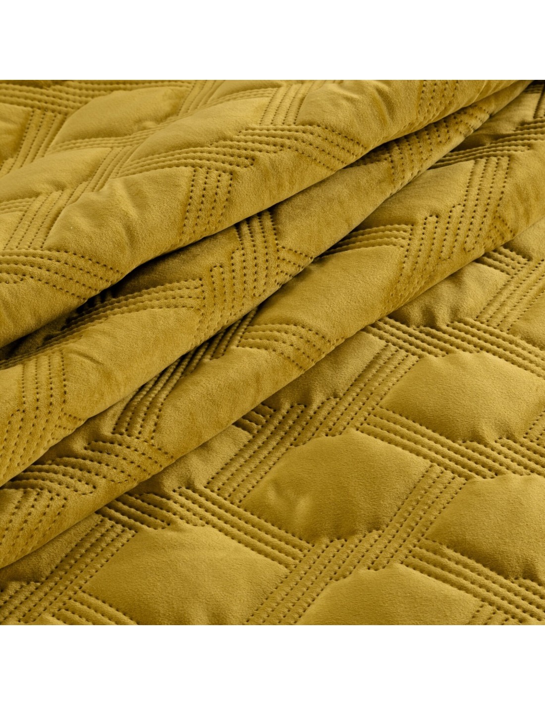 Narzuta welwetowa, wykonana techniką "hot press" szerokość: 200 cm, długość: 220 cm, kolor: miodowy, Gramatura: 250 GSM, Skład: 100% poliester