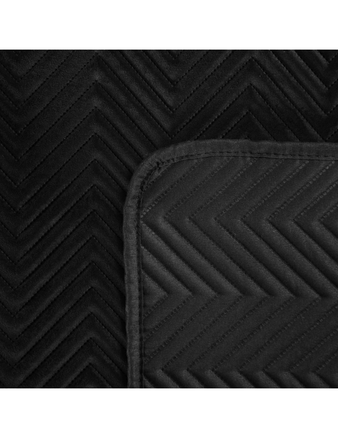 Ekskluzywna narzuta na łóżko z miękkiego i przyjemnego w dotyku welwetu pikowanego w dużą, gęstą jodełką. Do pikowania wykorzystano metodę bezszwową hotpress. szerokość: 70 cm, długość: 160 cm, kolor: czarny, Gramatura: 250+120+65 GSM, Skład: 100% poliester