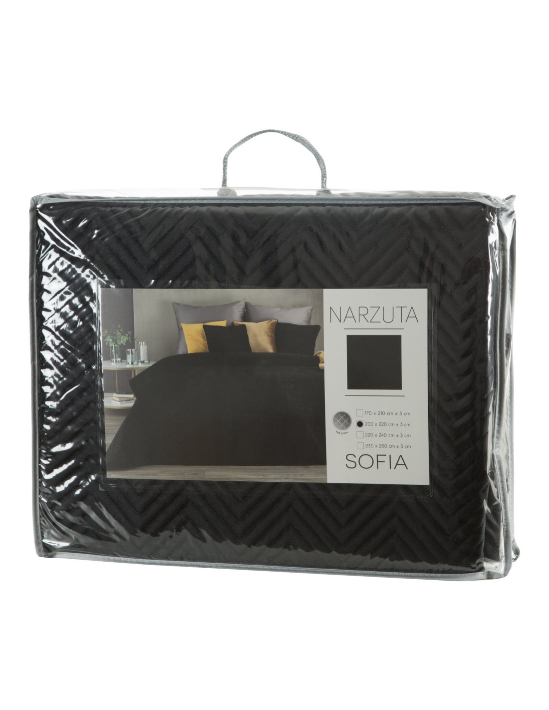 Ekskluzywna narzuta na łóżko z miękkiego i przyjemnego w dotyku welwetu pikowanego w dużą, gęstą jodełką. Do pikowania wykorzystano metodę bezszwową hotpress. szerokość: 170 cm, długość: 210 cm, kolor: czarny, Gramatura: 250+120+65 GSM, Skład: 100% poliester