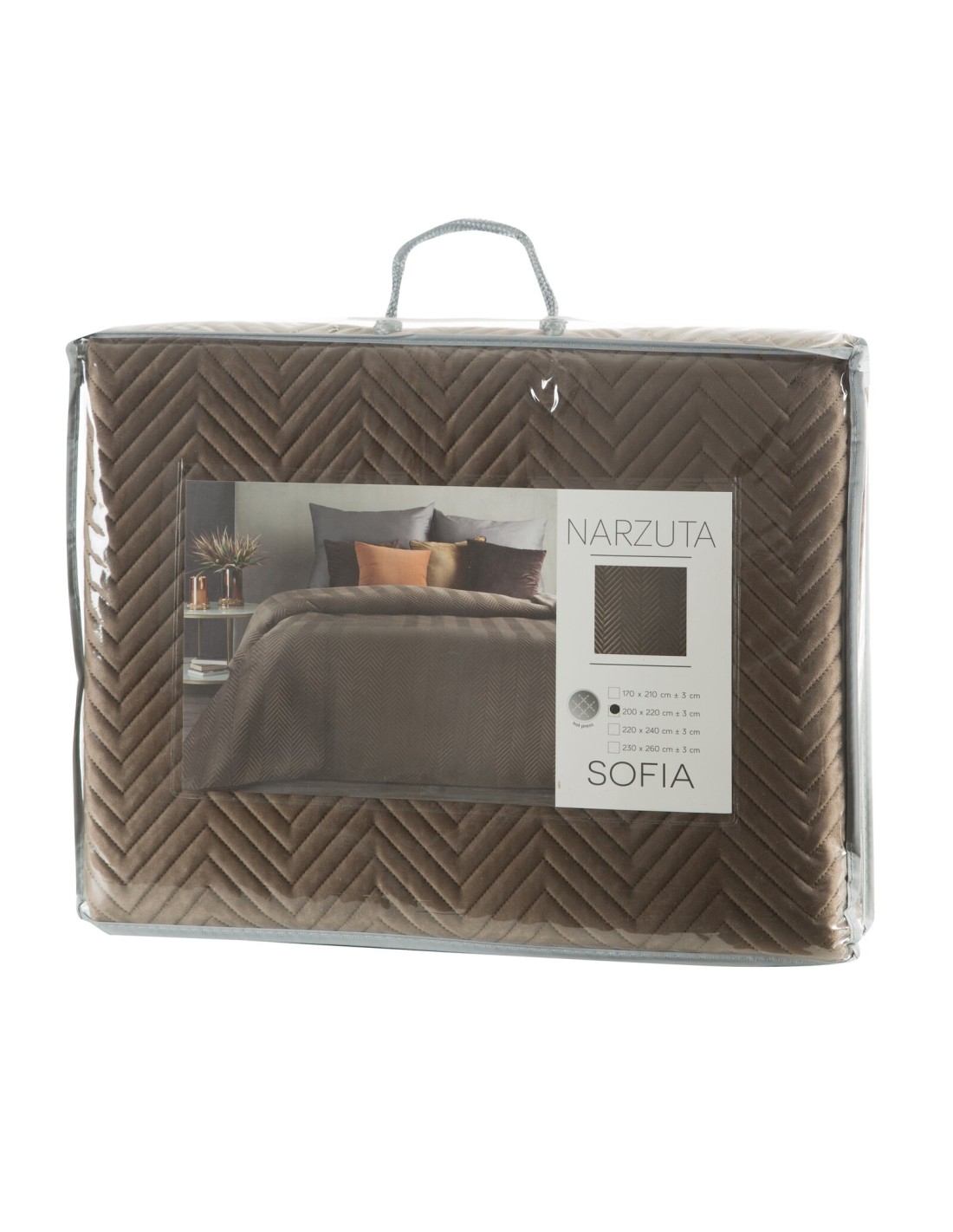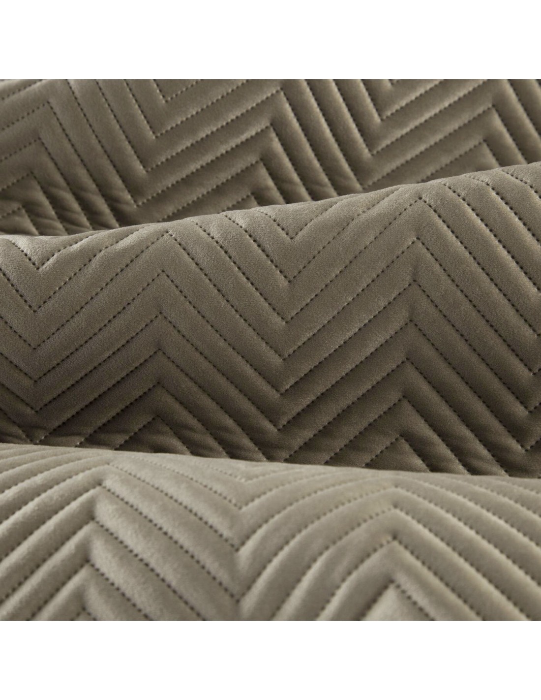 Ekskluzywna narzuta na łóżko z miękkiego i przyjemnego w dotyku welwetu pikowanego w dużą, gęstą jodełką. Do pikowania wykorzystano metodę bezszwową hotpress. szerokość: 230 cm, długość: 260 cm, kolor: brązowy, Gramatura: 250+120+65 GSM, Skład: 100% poliester