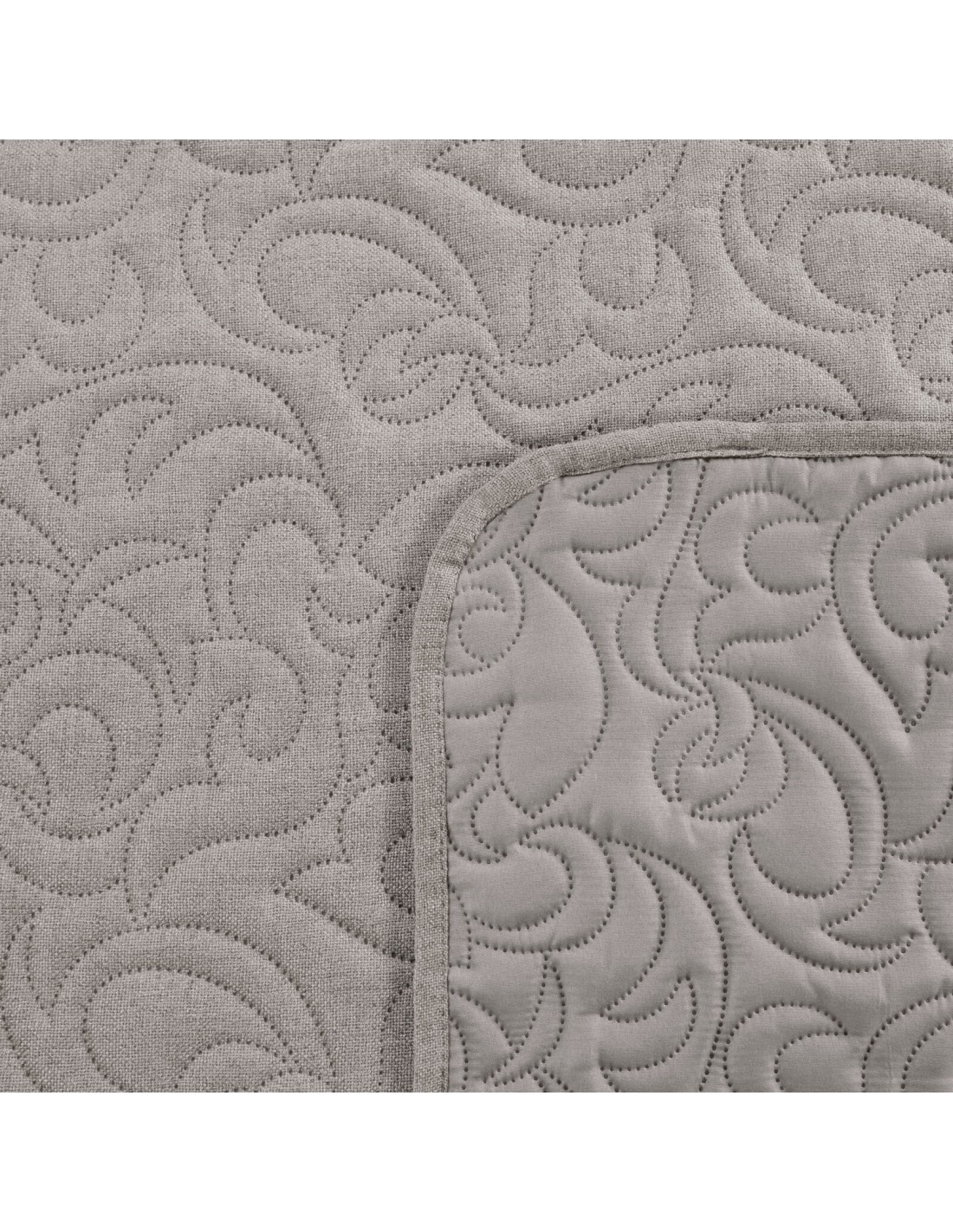 Narzuta hot press imitująca len szerokość: 220 cm, długość: 240 cm, kolor: popielaty, Gramatura: 185 GSM, Skład: 100% poliester