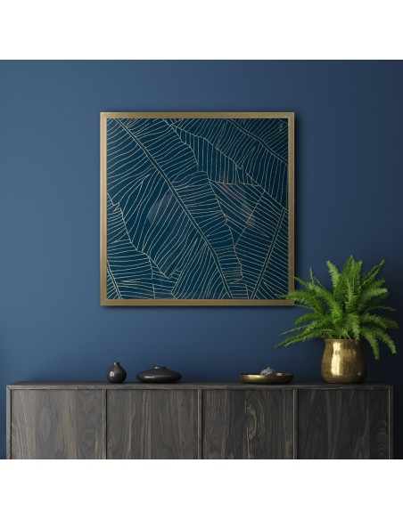 Obraz ze złotym nadrukiem, oprawiony w ramę szerokość: 53 cm, długość: 53 cm, kolor: granatowy, Skład: płótno, mdf, plastik