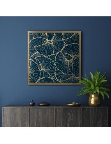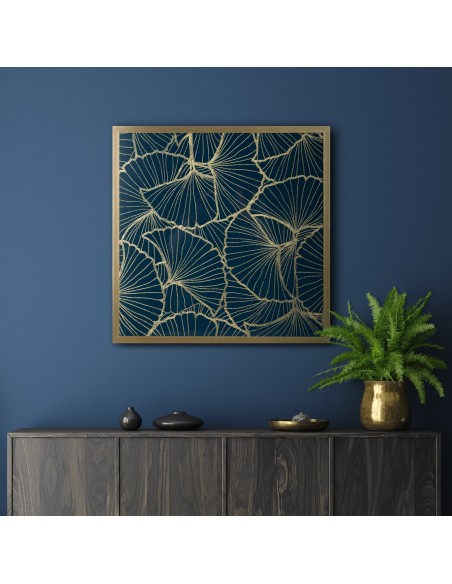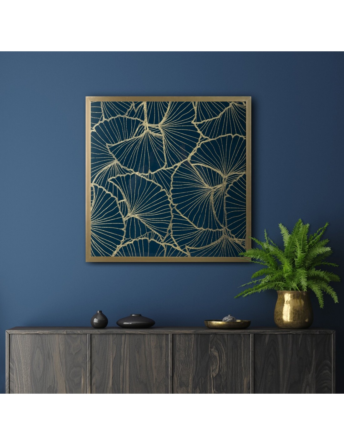 Obraz ze złotym nadrukiem, oprawiony w ramę szerokość: 53 cm, długość: 53 cm, kolor: granatowy, Skład: płótno, mdf, plastik
