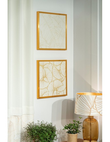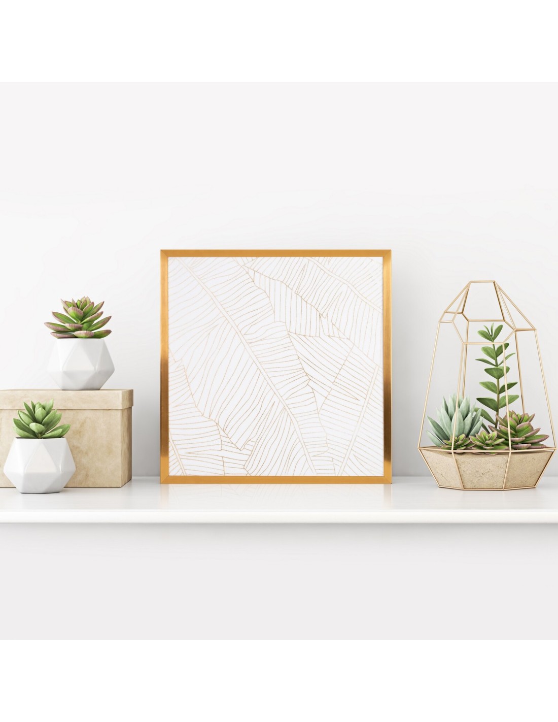 Obraz ze złotym nadrukiem, oprawiony w ramę szerokość: 53 cm, długość: 53 cm, kolor: biały, Skład: płótno, mdf, plastik