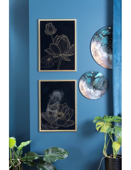 Obraz ze złotym nadrukiem, oprawiony w ramę szerokość: 53 cm, długość: 73 cm, kolor: czarny, Skład: płótno, mdf, plastik
