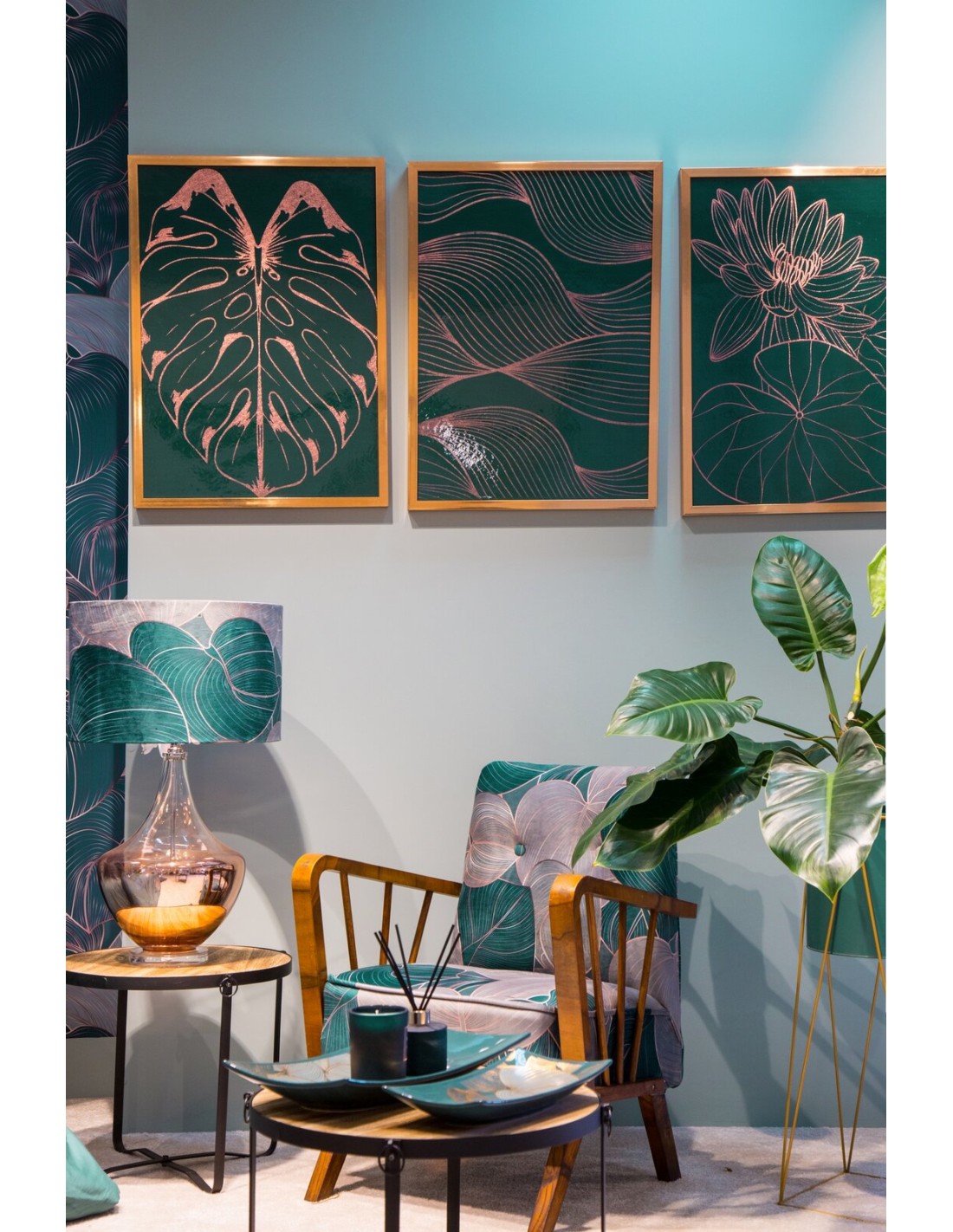 Obraz z miedzianym nadrukiem, oprawiony w ramę szerokość: 53 cm, długość: 73 cm, kolor: zielony, Skład: płótno, mdf, plastik