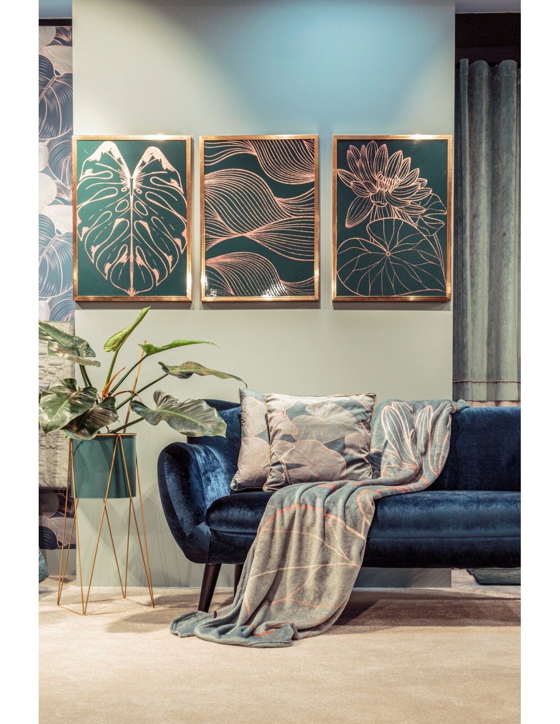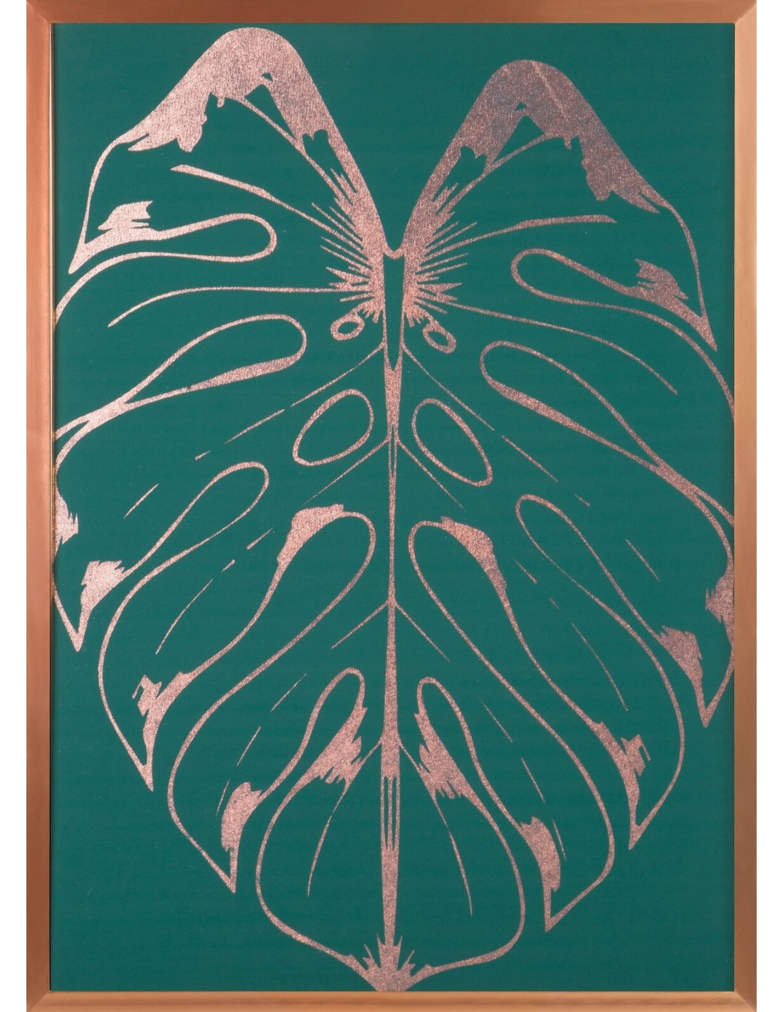 Obraz z miedzianym nadrukiem, oprawiony w ramę szerokość: 53 cm, długość: 73 cm, kolor: zielony, Skład: płótno, mdf, plastik