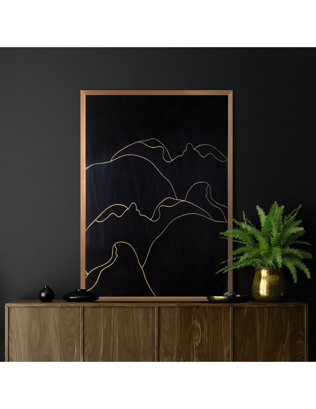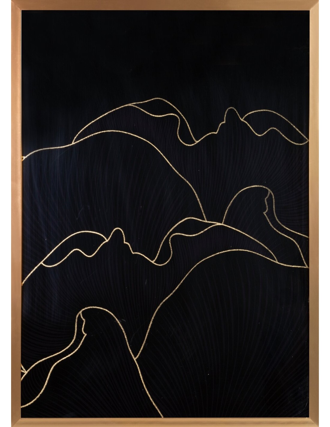 Obraz ze złotym nadrukiem, oprawiony w ramę szerokość: 53 cm, długość: 73 cm, kolor: czarny, Skład: płótno, mdf, plastik