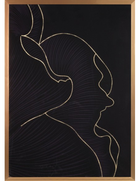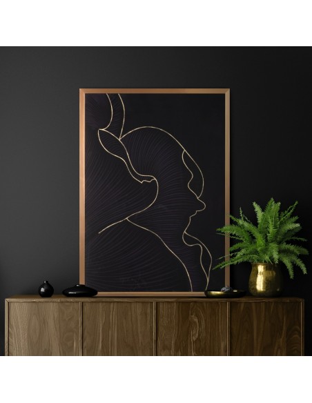 Obraz ze złotym nadrukiem, oprawiony w ramę szerokość: 53 cm, długość: 73 cm, kolor: czarny, Skład: płótno, mdf, plastik