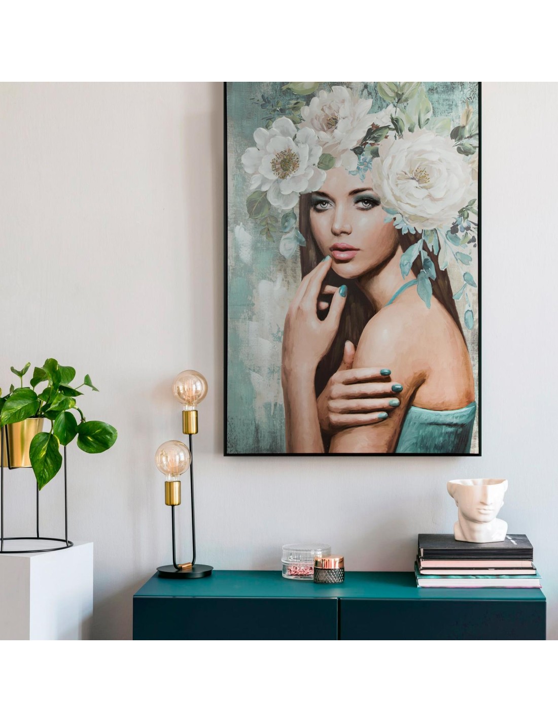 Obraz ręcznie malowany na płótnie oprawiony w ramę szerokość: 80 cm, długość: 120 cm, kolor: turkusowy, Skład: płótno, drewno, farba, plastik