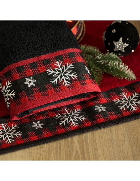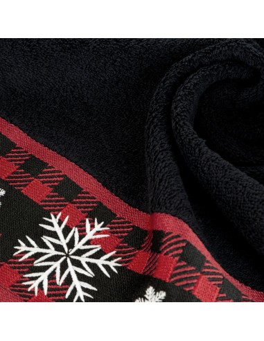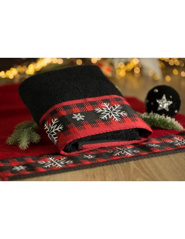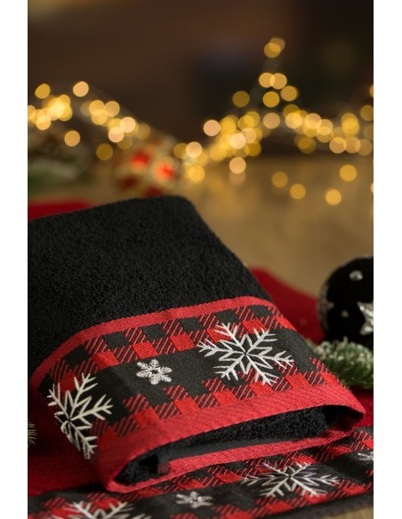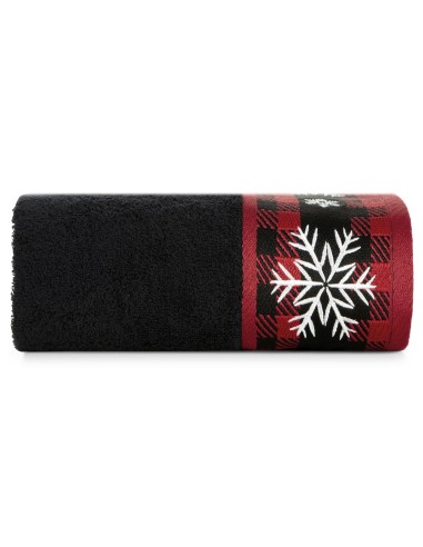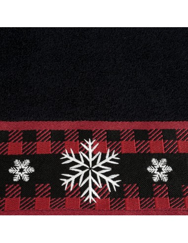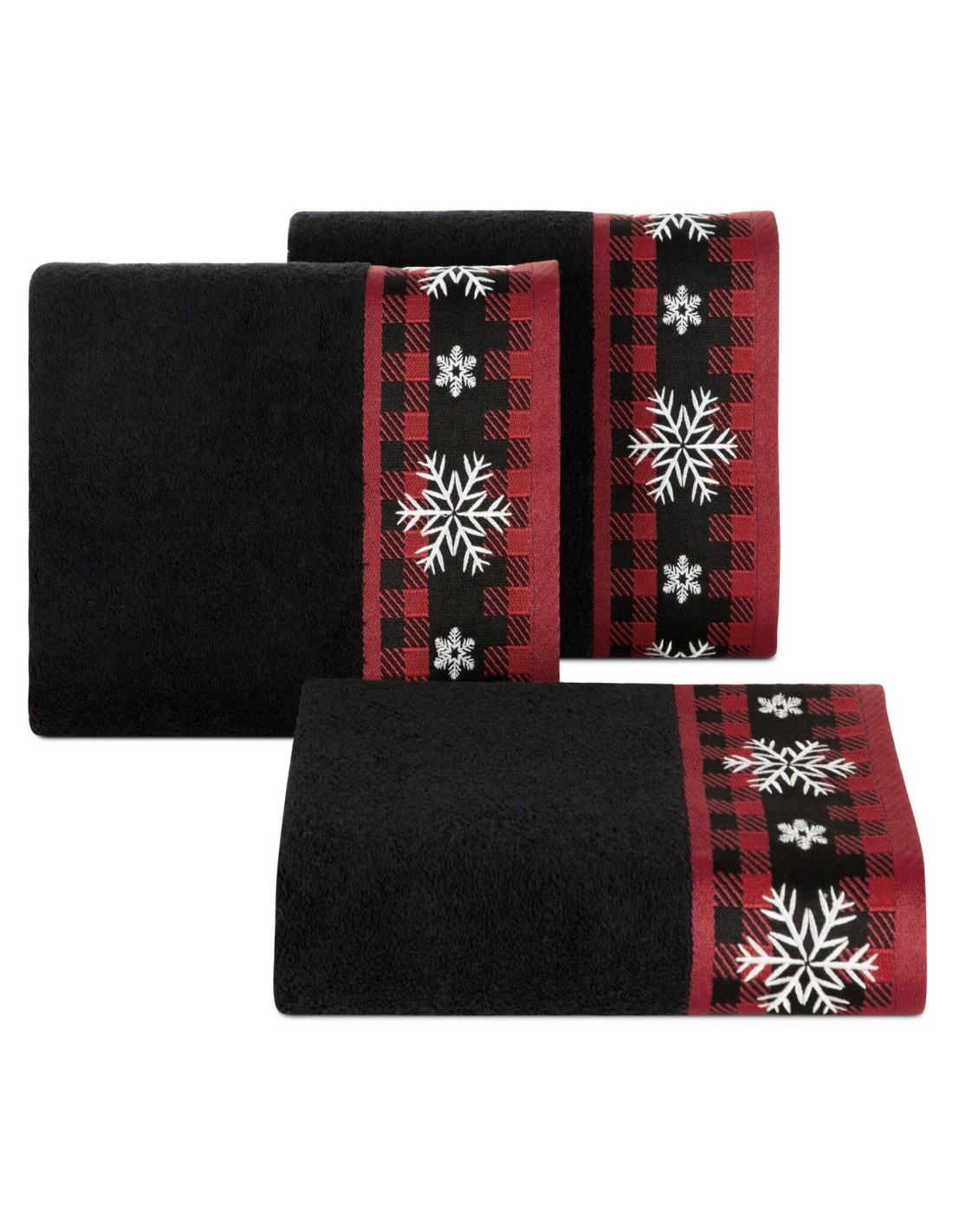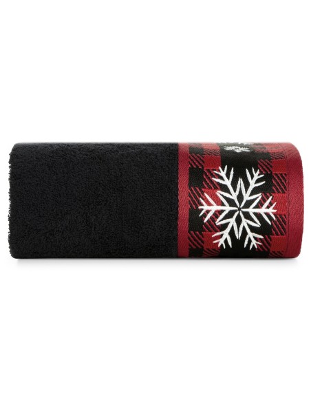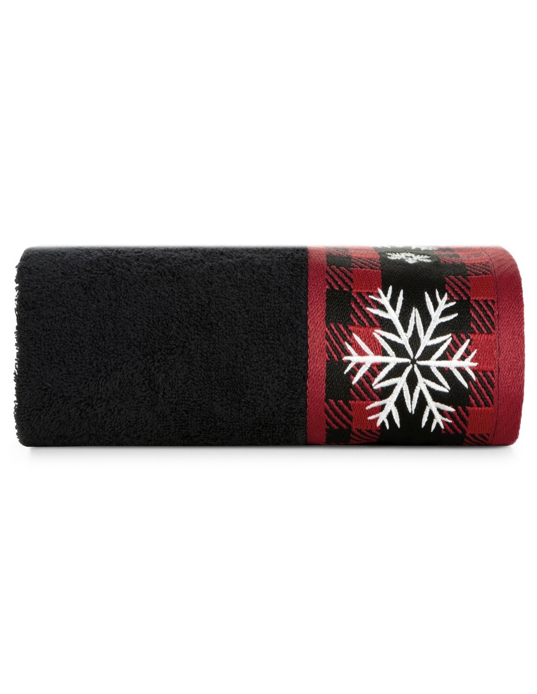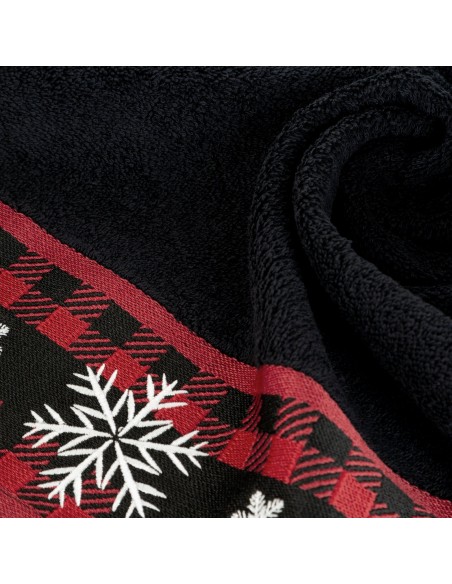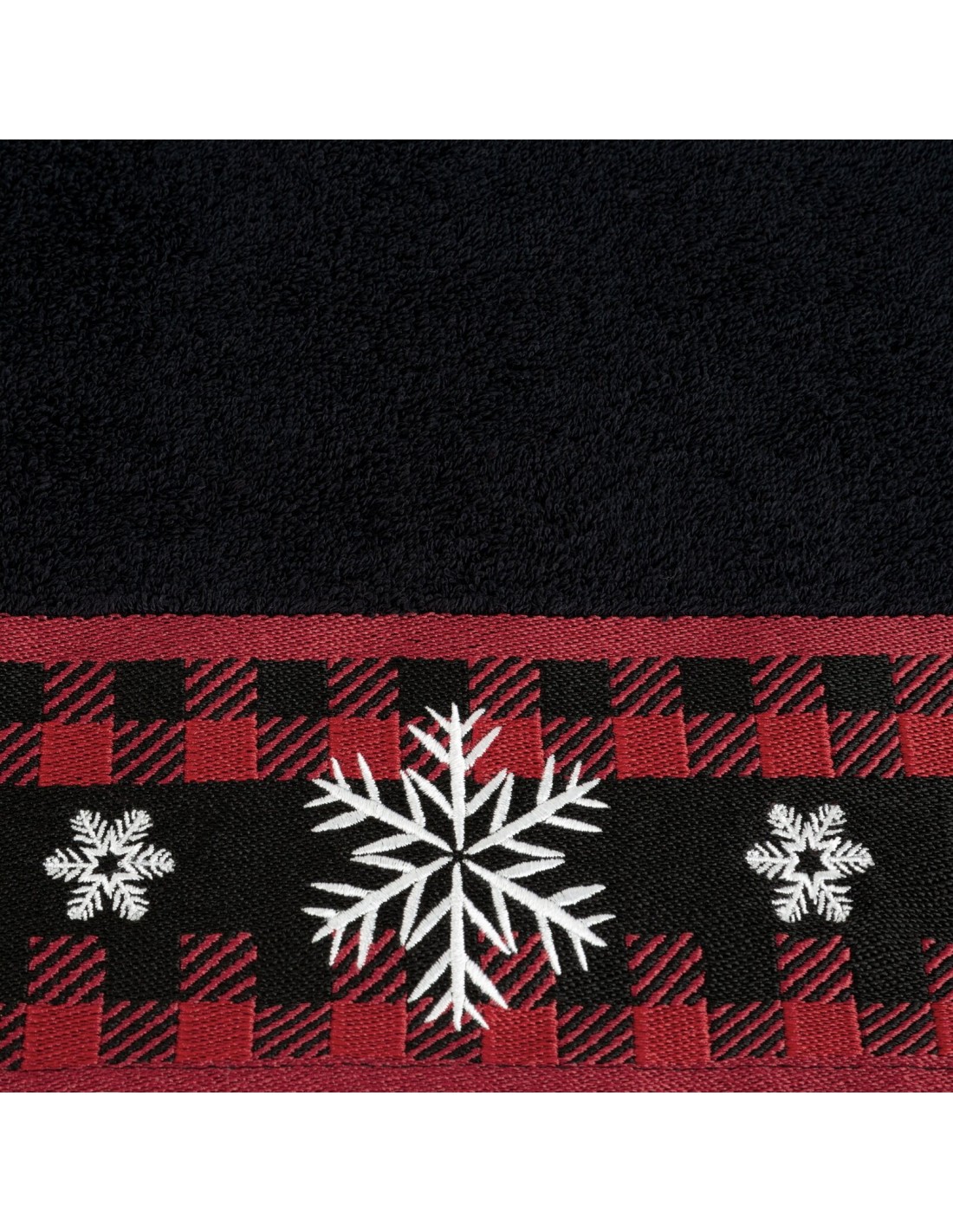 Ręcznik świąteczny z żakardową bordiurą zdobioną haftem szerokość: 50 cm, długość: 90 cm, kolor: czarny, Gramatura: 480 GSM, Skład: 100% bawełna; część ozdobna: 50% bawełna, 50% poliester