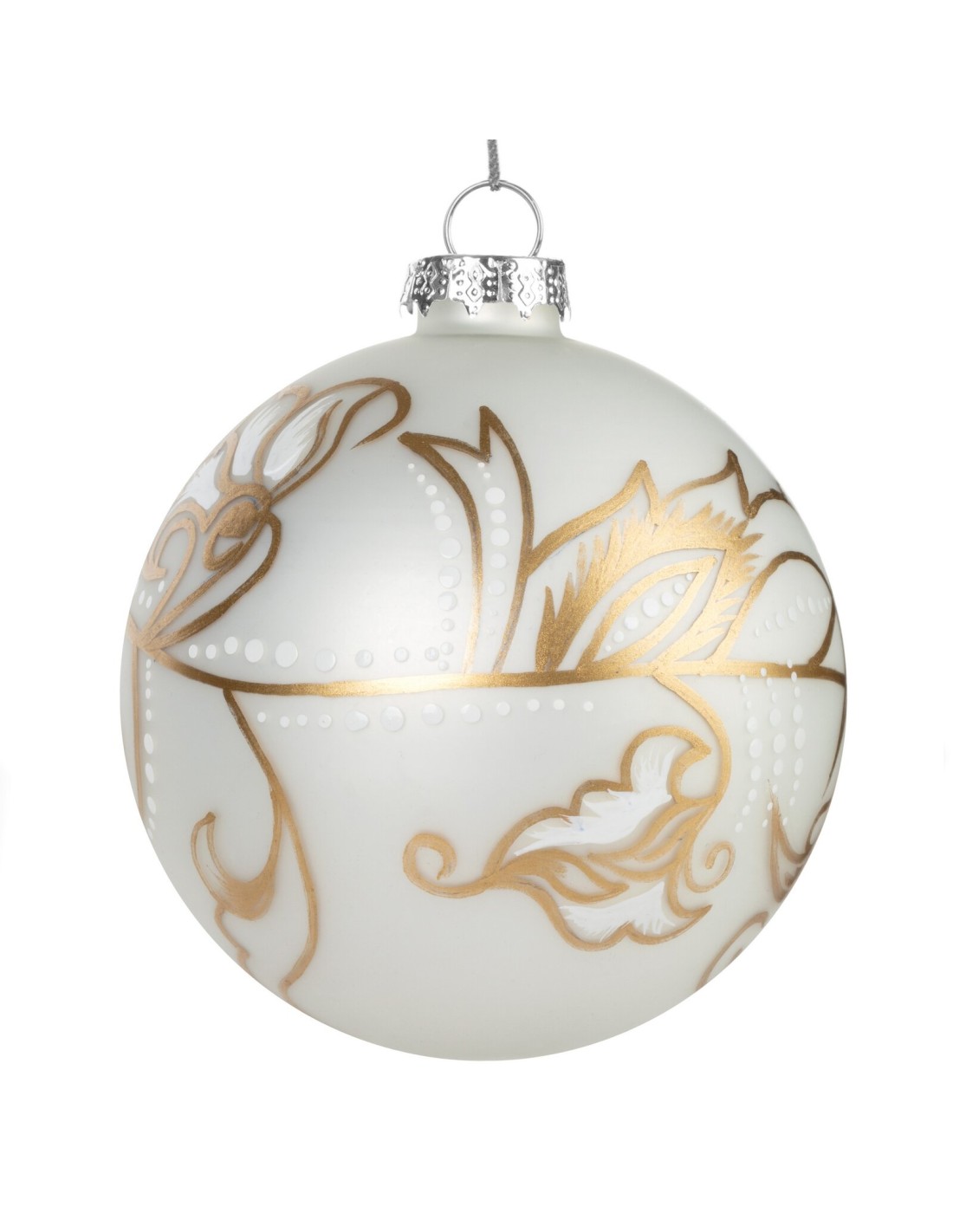 Bombka szklana zdobiona kryształkami kolor: biały, Skład: 100% szkło