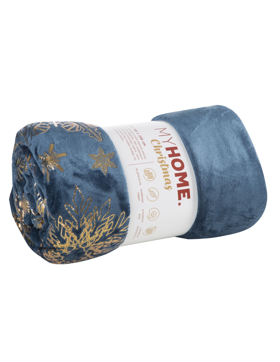świąteczny koc dekoracyjny z nadrukiem szerokość: 150 cm, długość: 200 cm, kolor: granatowy, Gramatura: 280 GSM, Skład: 100% poliester