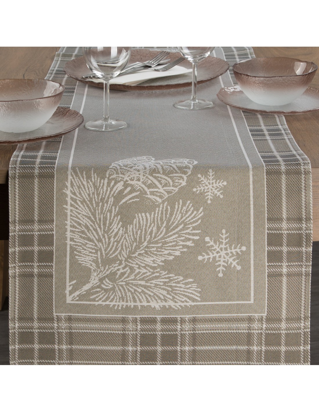 Obrus gobelinowy szerokość: 45 cm, długość: 100 cm, kolor: ciemnobeżowy, Gramatura: 410 GSM, Skład: 63% poliester, 34% bawełna, 3% akryl