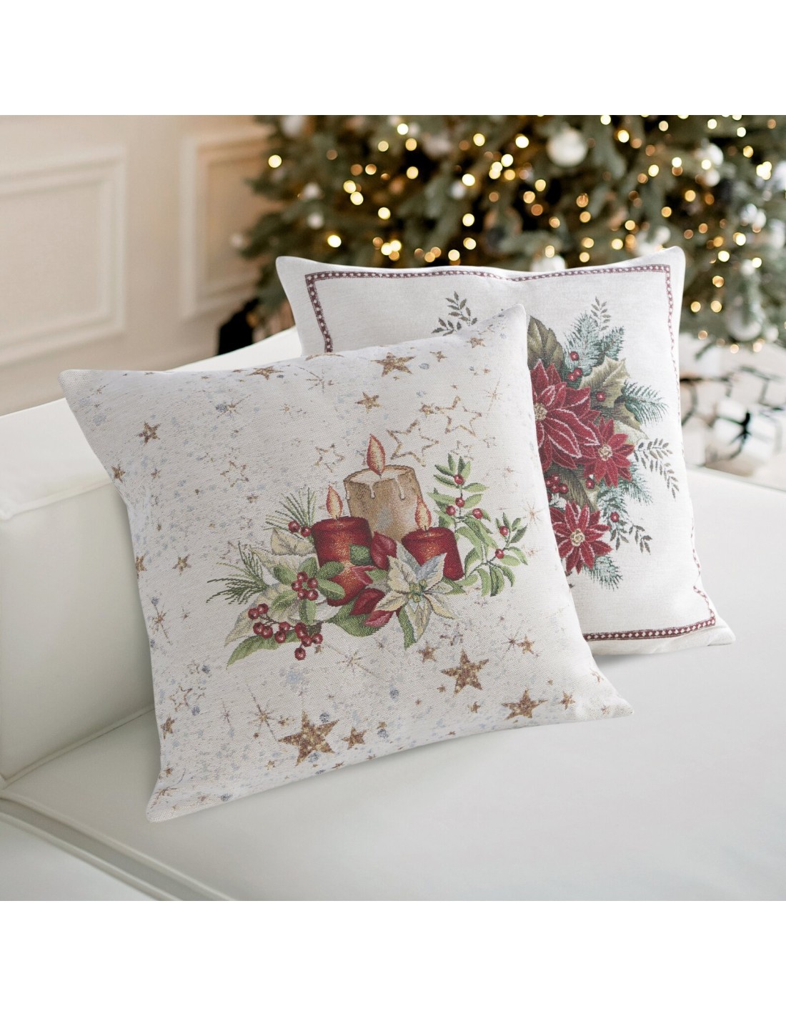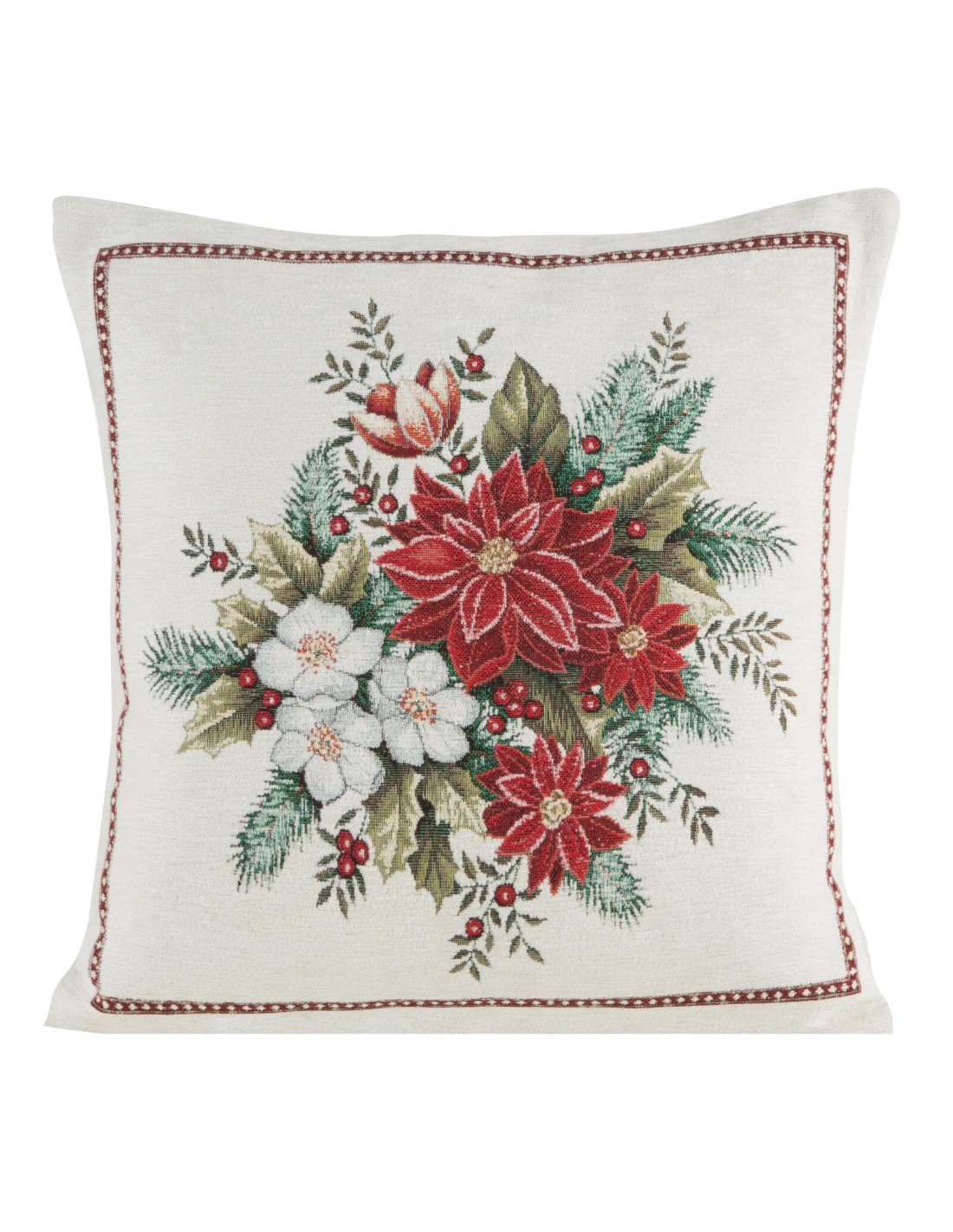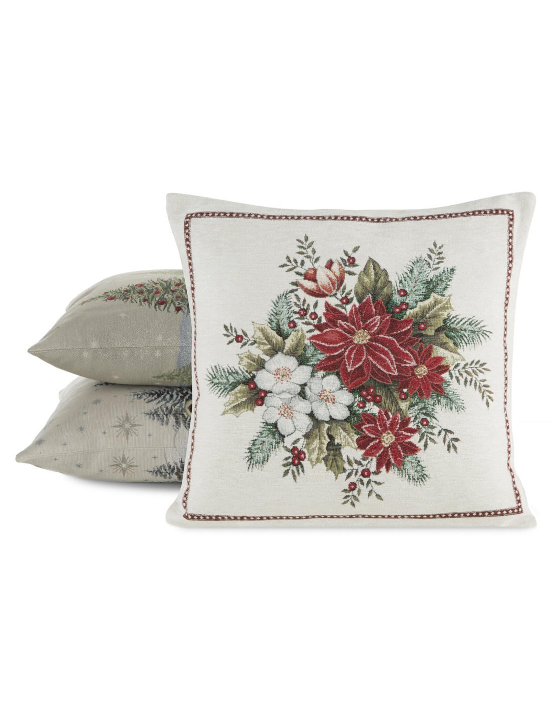 Poszewka gobelinowa ze świątecznym wzorem szerokość: 45 cm, długość: 45 cm, kolor: czerwony, Gramatura: 315 GSM, Skład: 43% poliester, 40% akryl, 17% bawełna