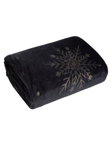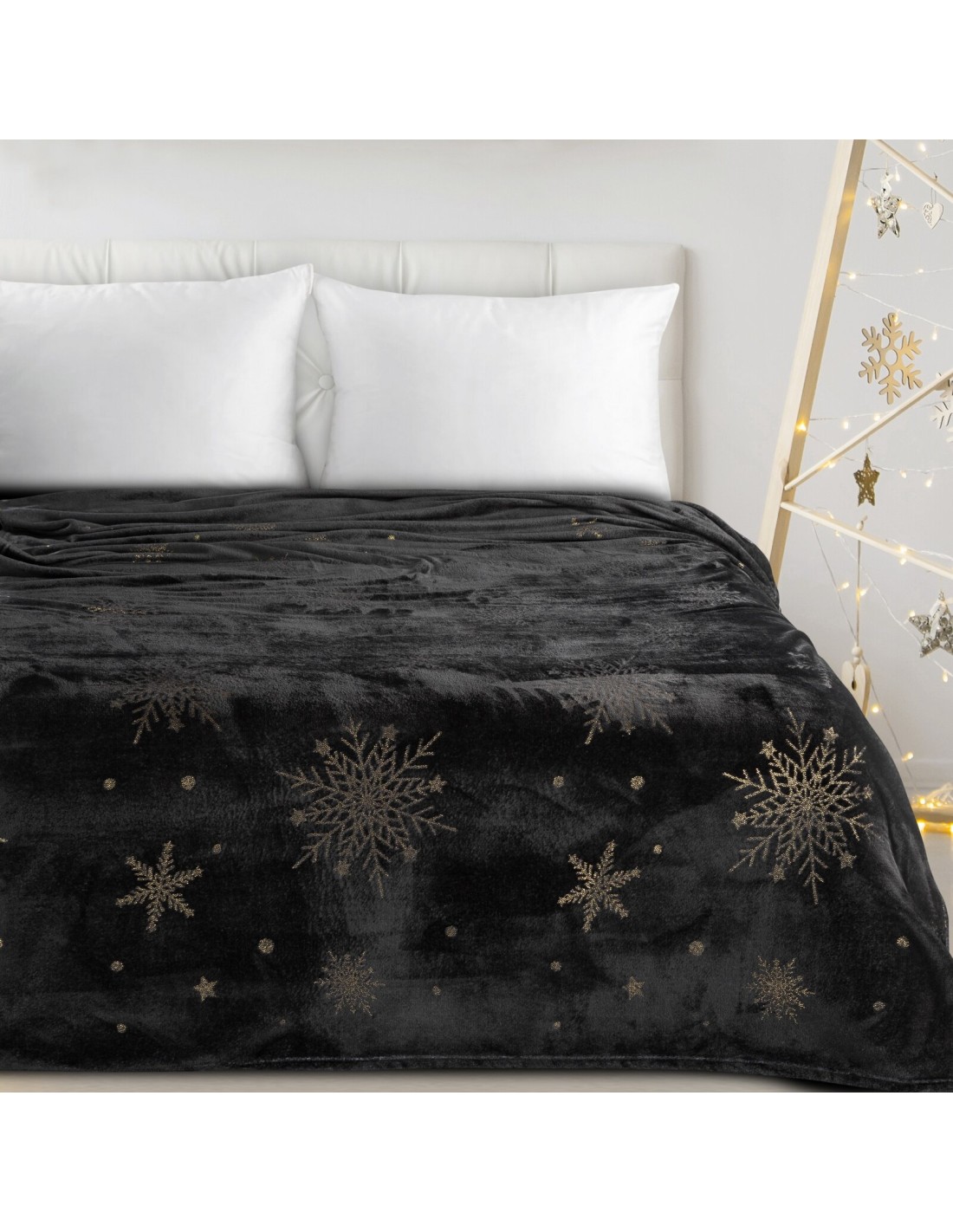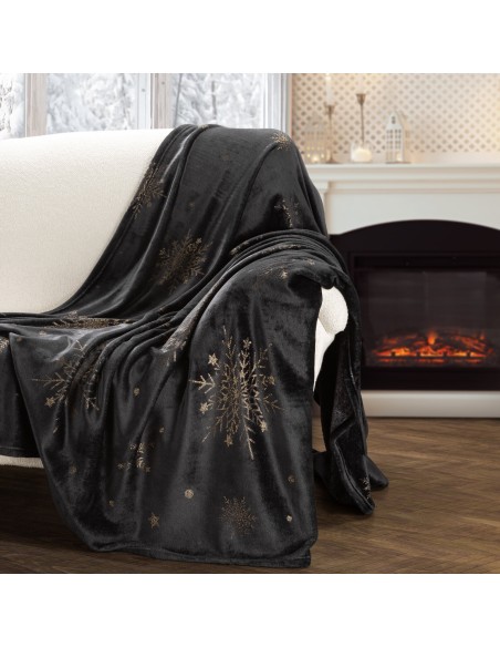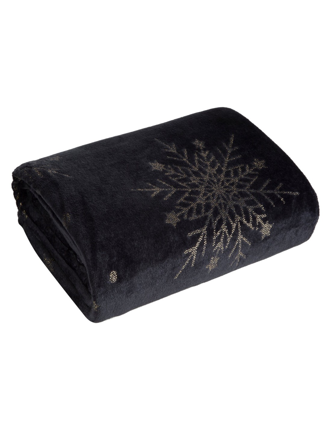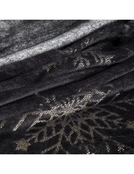 świąteczny koc typu flano z ozdobnym foliowym nadrukiem szerokość: 150 cm, długość: 200 cm, kolor: czarny, Gramatura: 240 GSM, Skład: 100% poliester