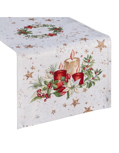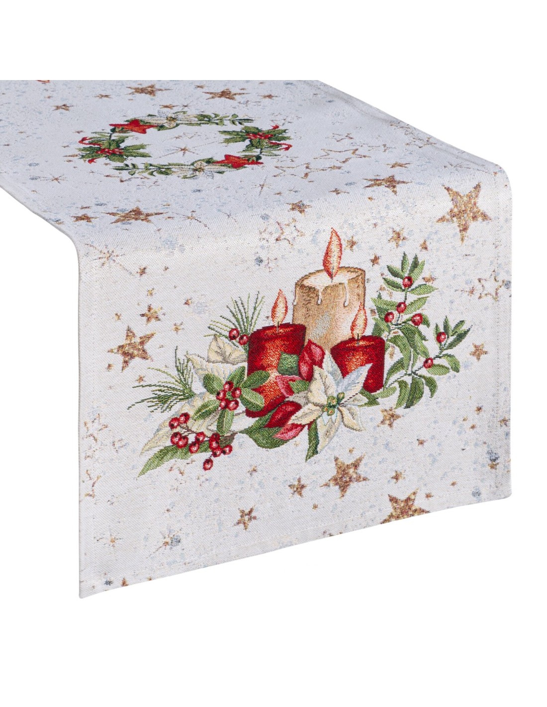 Obrus gobelinowy ze świątecznym wzorem szerokość: 45 cm, długość: 140 cm, kolor: naturalny, Skład: 63% poliester, 34% bawełna, 3% akryl