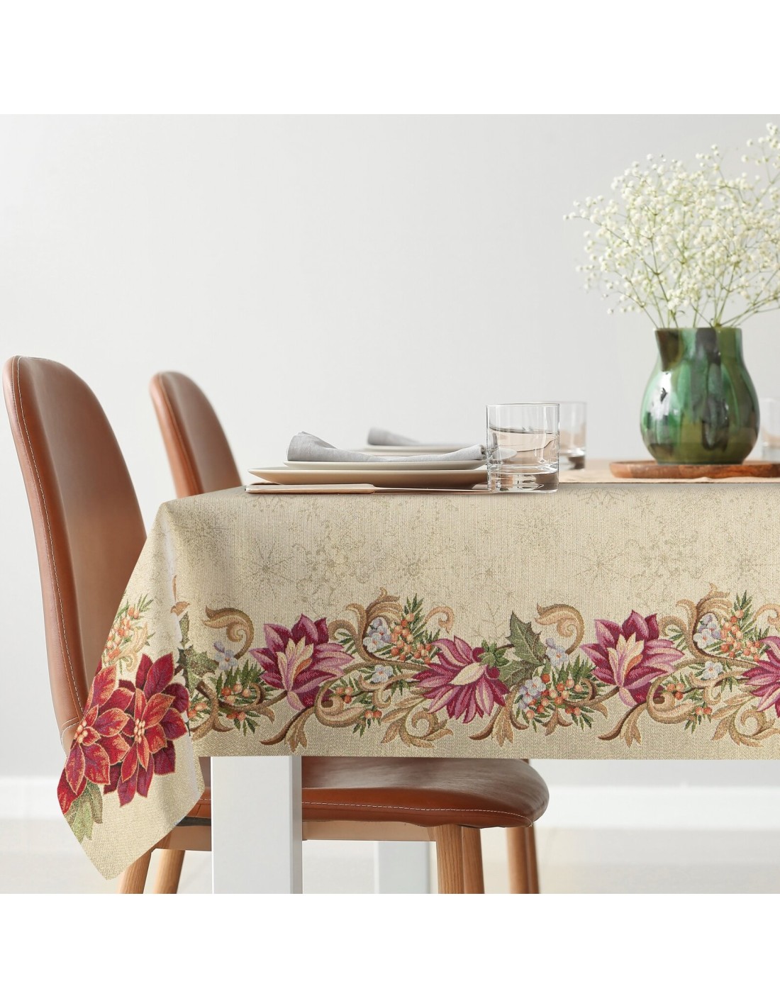Obrus gobelinowy ze świątecznym wzorem szerokość: 140 cm, długość: 180 cm, kolor: złoty, Gramatura: 315 GSM, Skład: 53% poliester, 40% bawełna, 4% nić metaliczna, 3% akryl