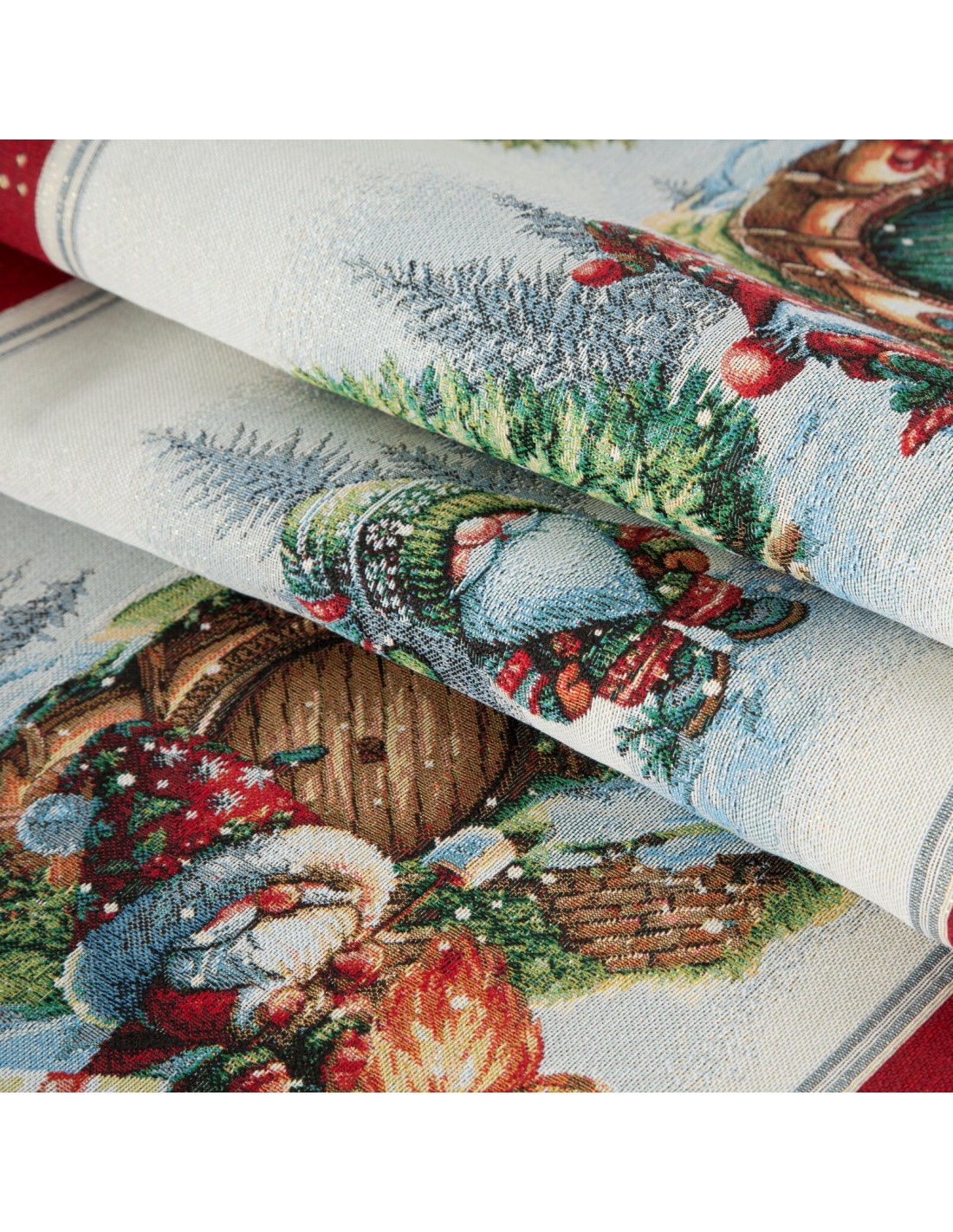 Obrus gobelinowy ze świątecznym wzorem szerokość: 45 cm, długość: 140 cm, kolor: czerwony, Gramatura: 415 GSM, Skład: 83% poliester, 15% bawełna, 2% lureks