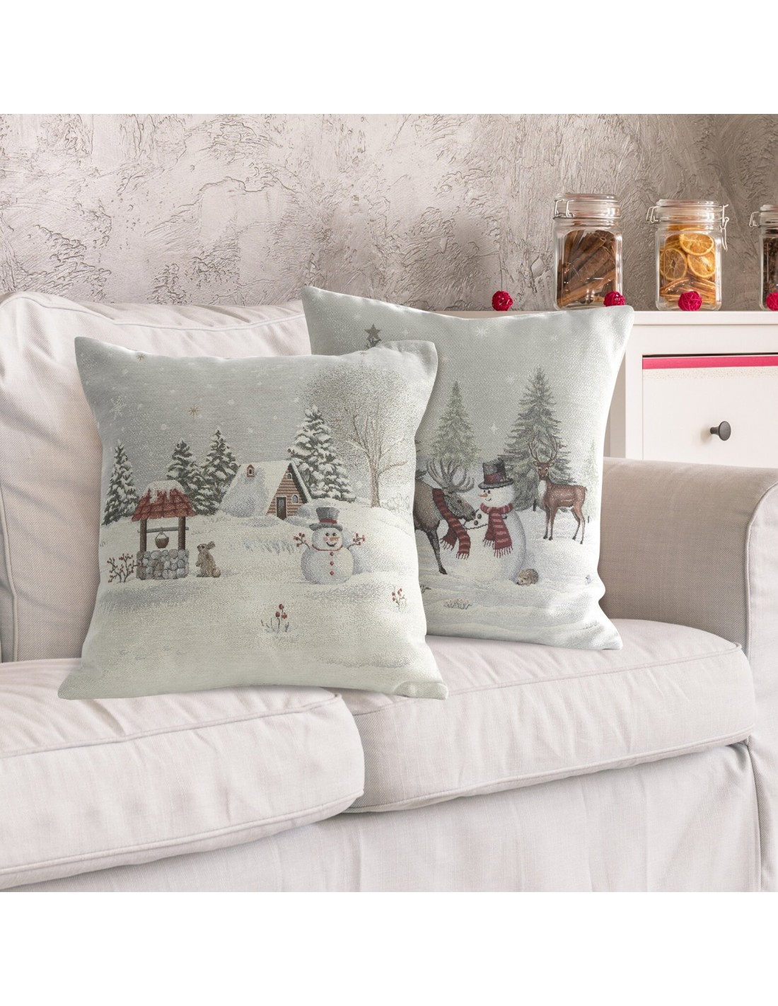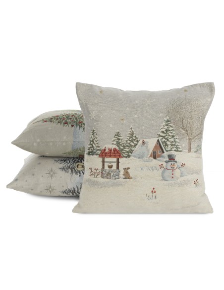 Poszewka gobelinowa ze świątecznym wzorem szerokość: 45 cm, długość: 45 cm, kolor: popielaty, Gramatura: 315 GSM, Skład: 53% poliester, 40% bawełna, 4% nić metaliczna, 3% akryl