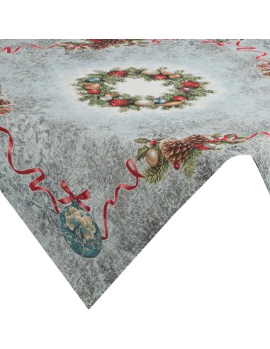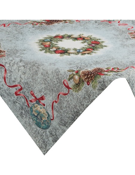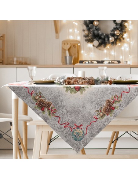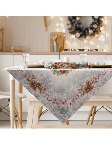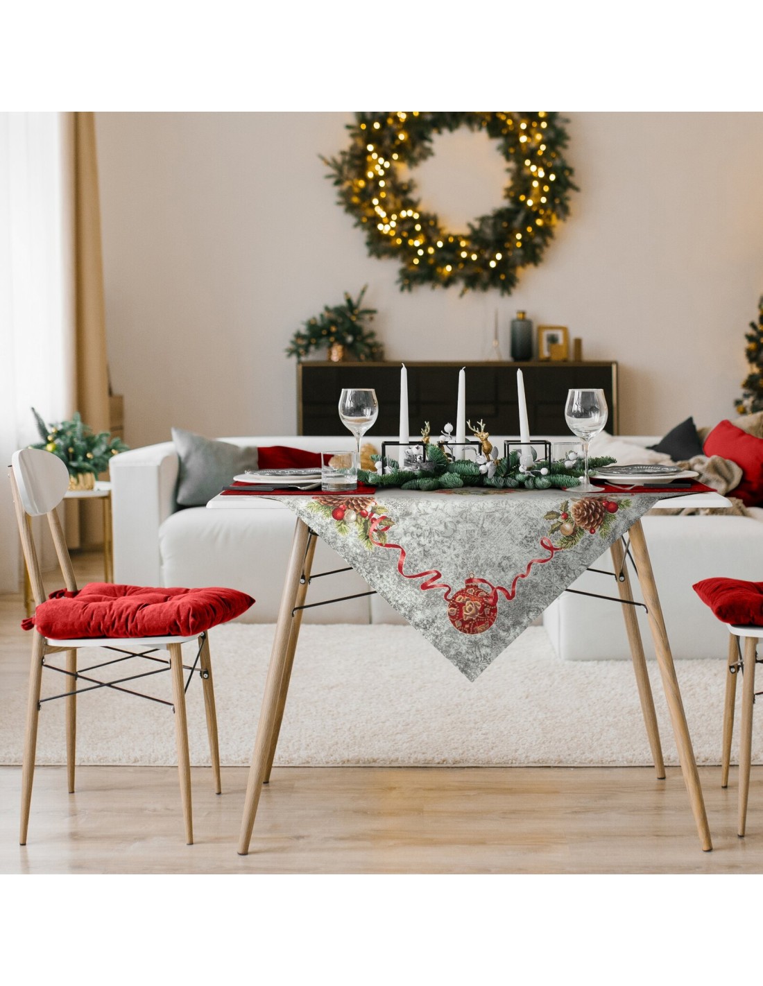 Obrus gobelinowy ze świątecznym wzorem szerokość: 100 cm, długość: 100 cm, kolor: popielaty, Gramatura: 400 GSM, Skład: 63% poliester, 34% bawełna, 3% akryl
