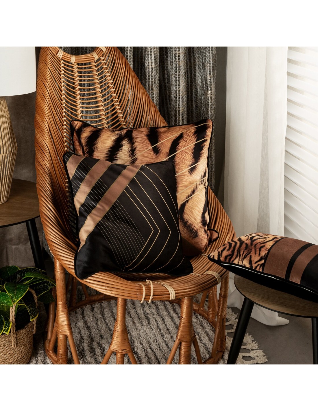 Poszewka dekoracyjna z welwetu hiszpańskiego z nowoczesnym designem szerokość: 60 cm, długość: 60 cm, kolor: brązowy, Gramatura: 360 GSM GSM, Skład: 100% poliester