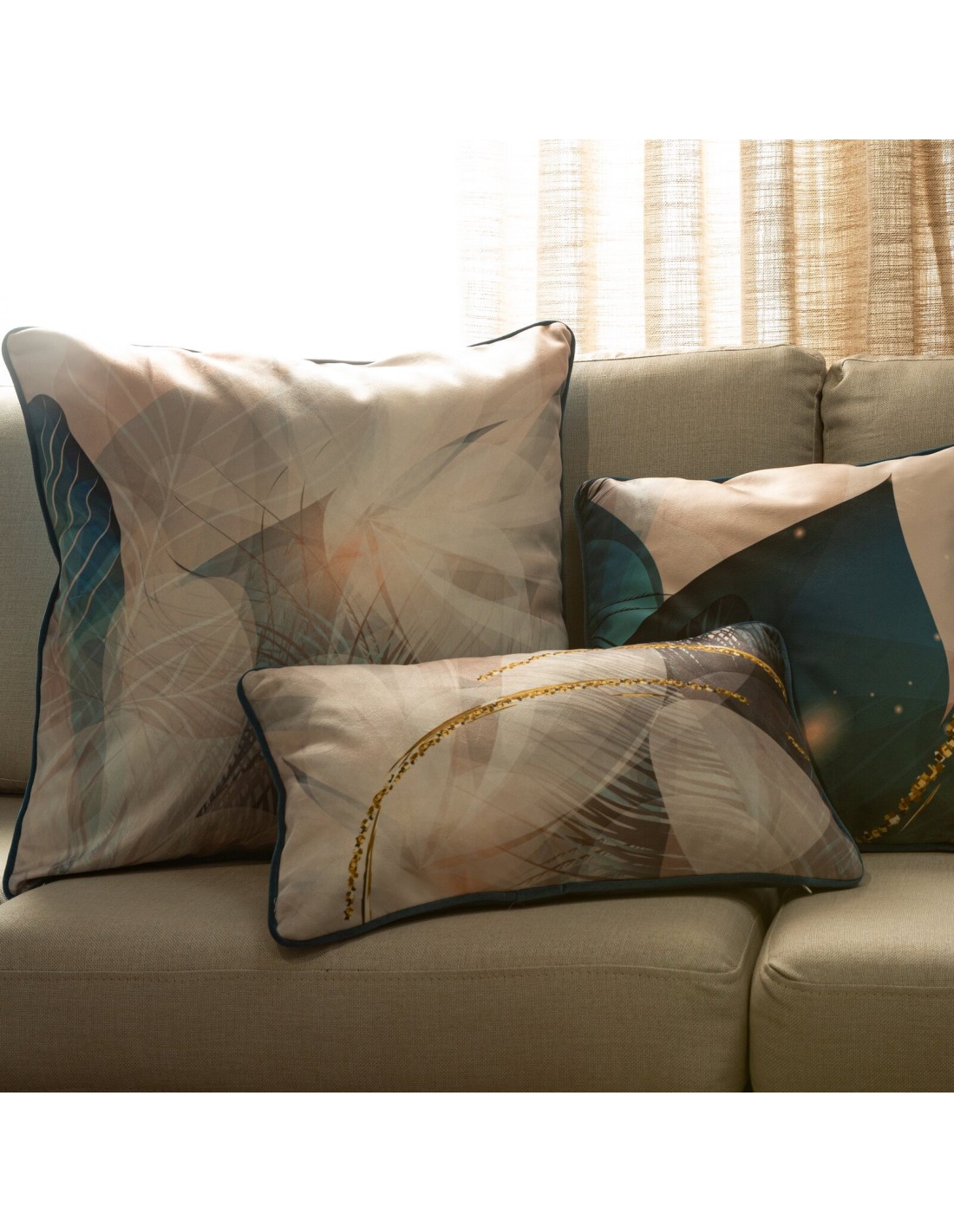 Poszewka dekoracyjna z welwetu hiszpańskiego z nowoczesnym designem szerokość: 30 cm, długość: 50 cm, kolor: kremowy, Gramatura: 360 GSM GSM, Skład: 100% poliester