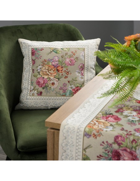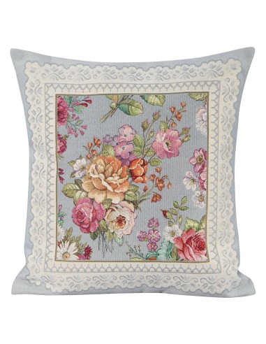 Poszewka gobelinowa szerokość: 45 cm, długość: 45 cm, kolor: popielaty, Skład: 63% poliester, 34% bawełna, 3% akryl