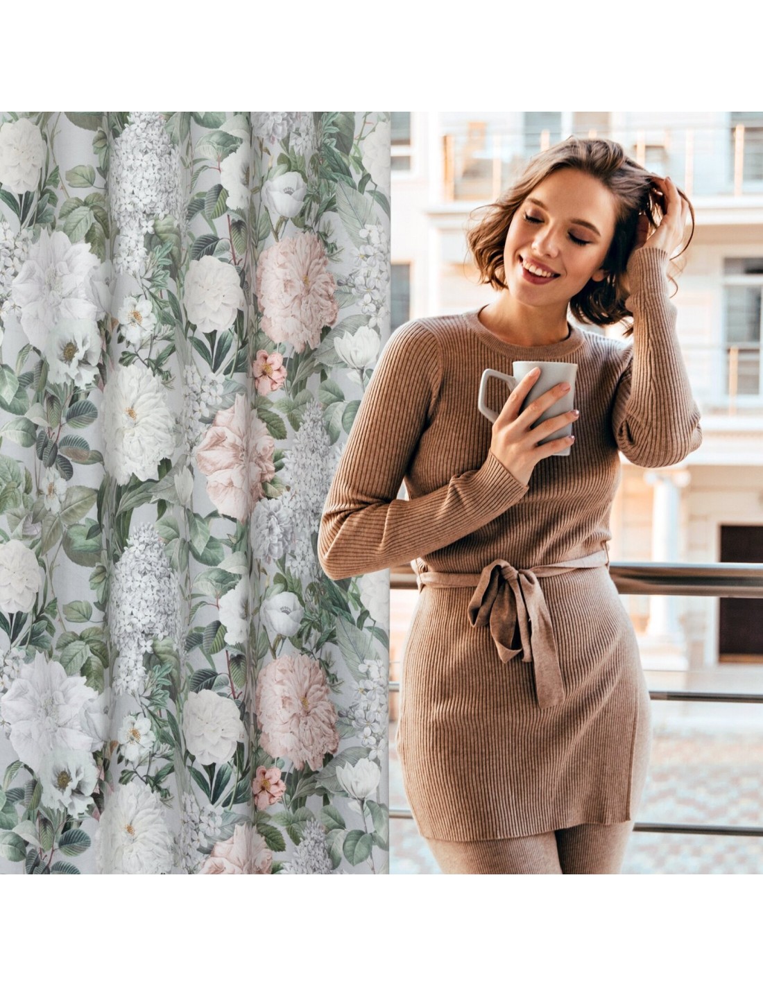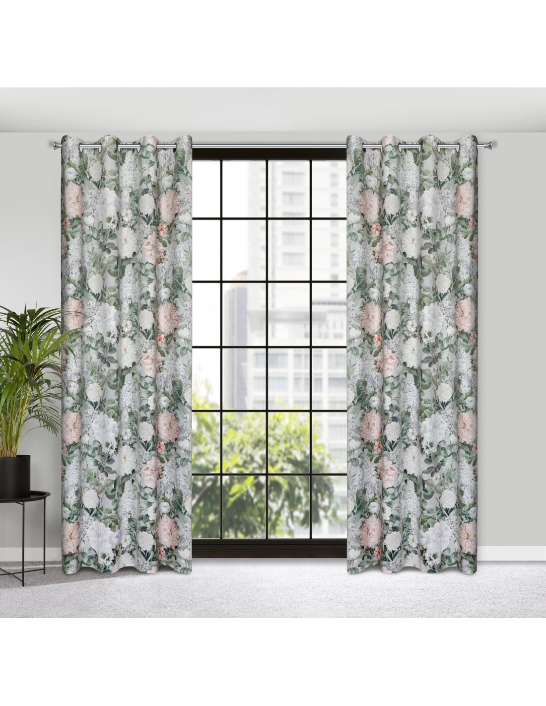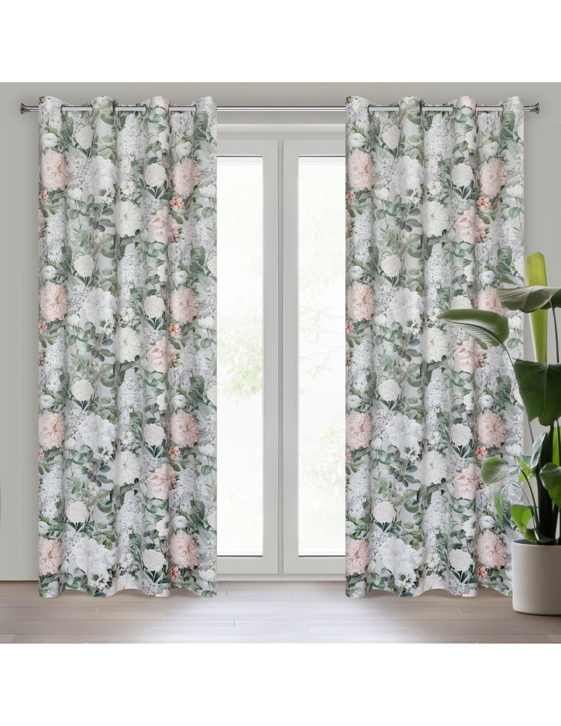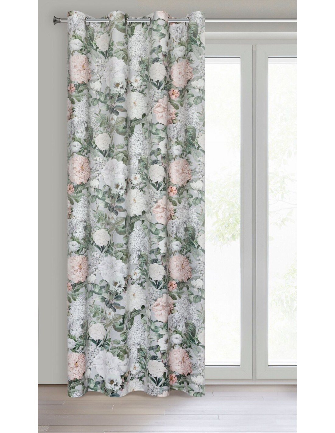 Zasłona welwetowa z nadrukiem kwiatowym szerokość: 140 cm, długość: 250 cm, kolor: różowy, Gramatura: 200 GSM, Skład: 100% poliester