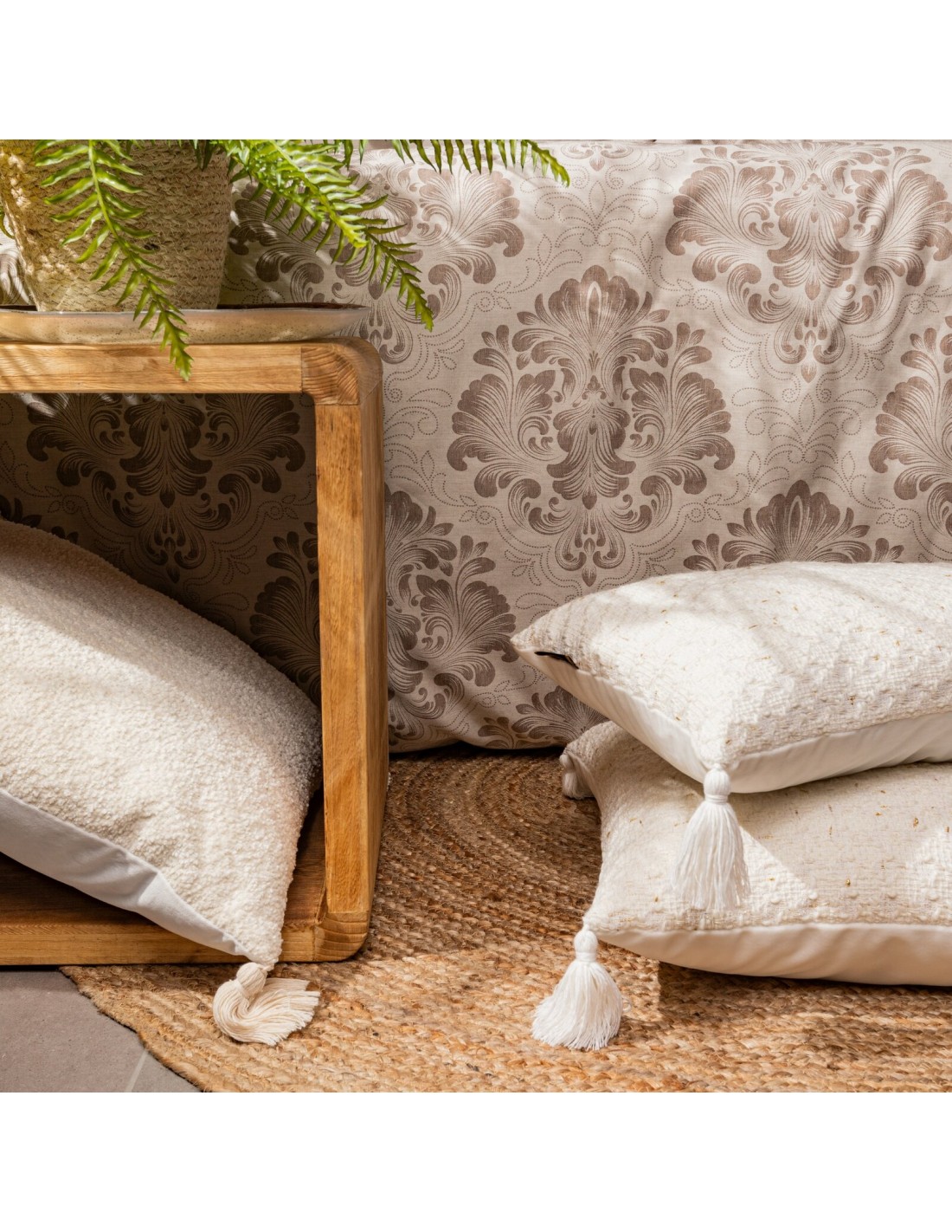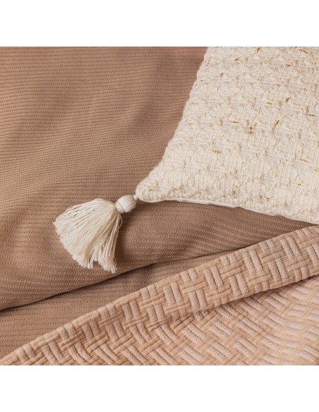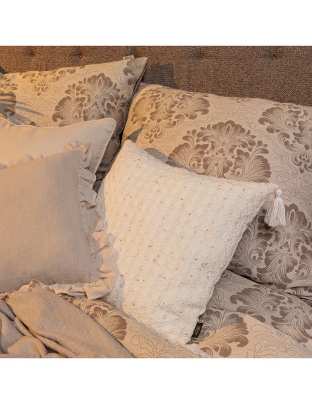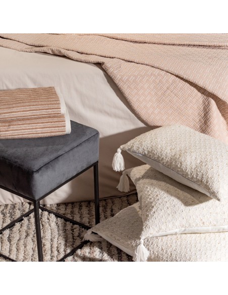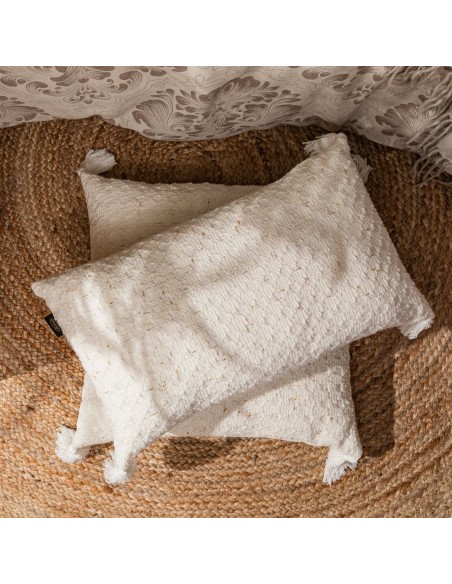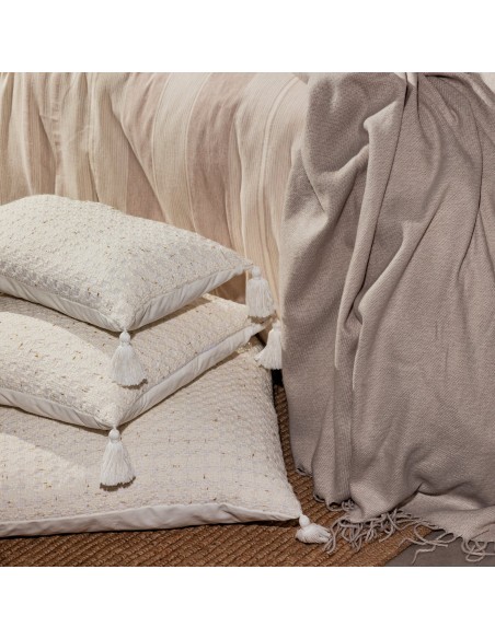 Poszewka dekoracyjna z pomponami szerokość: 60 cm, długość: 60 cm, kolor: kremowy, Gramatura: 430gsm GSM, Skład: 100% poliester