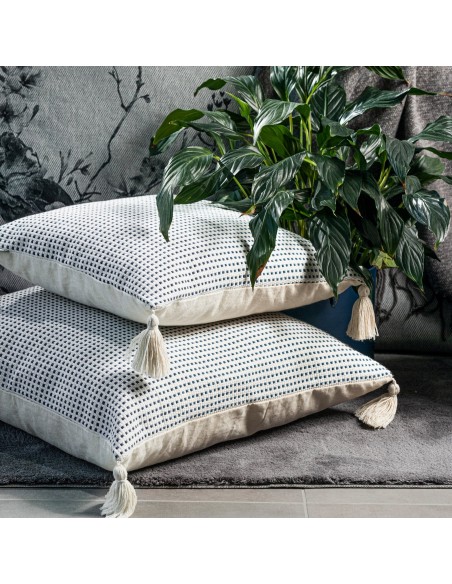 Poszewka dekoracyjna bawełniana z pomponami szerokość: 30 cm, długość: 50 cm, kolor: kremowy, Gramatura: 430gsm GSM, Skład: 100% poliester