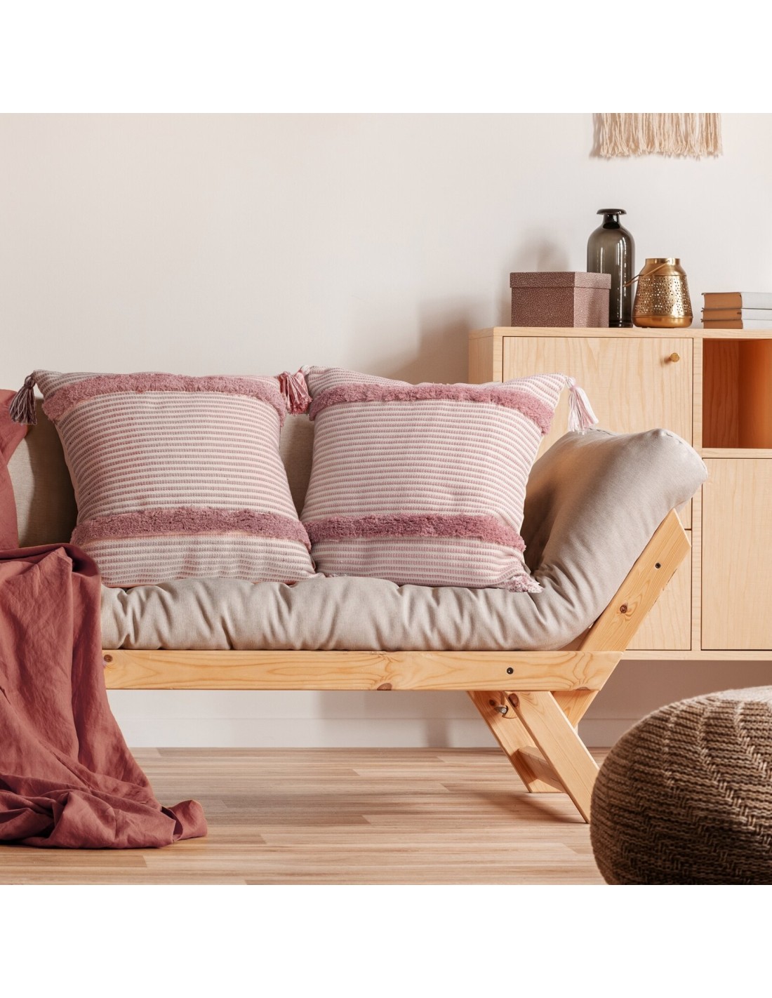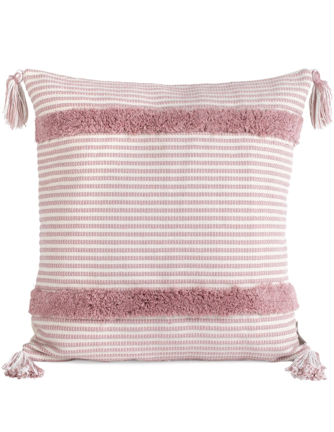 Poszewka dekoracyjna bawełniana z pomponami szerokość: 45 cm, długość: 45 cm, kolor: różowy, Gramatura: 430gsm GSM, Skład: 100% poliester