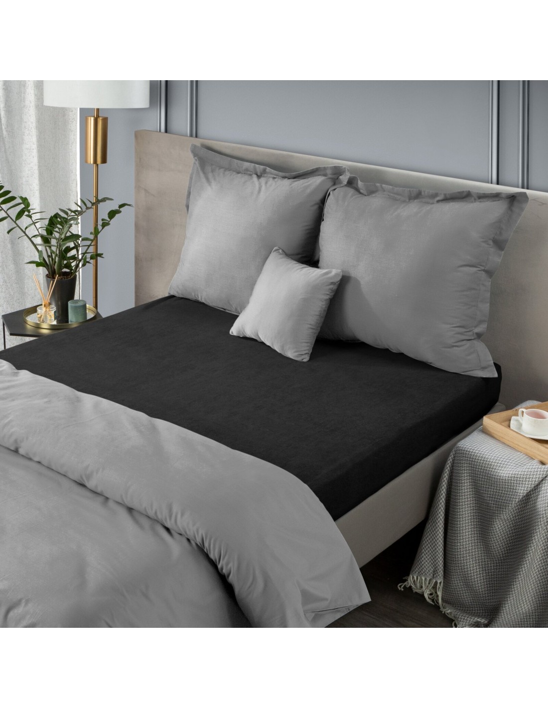Prześcieradło frotte z gumką szerokość: 220 cm, długość: 200 cm, kolor: czarny, Gramatura: 170 GSM, Skład: 20% poliester, 80% bawełna