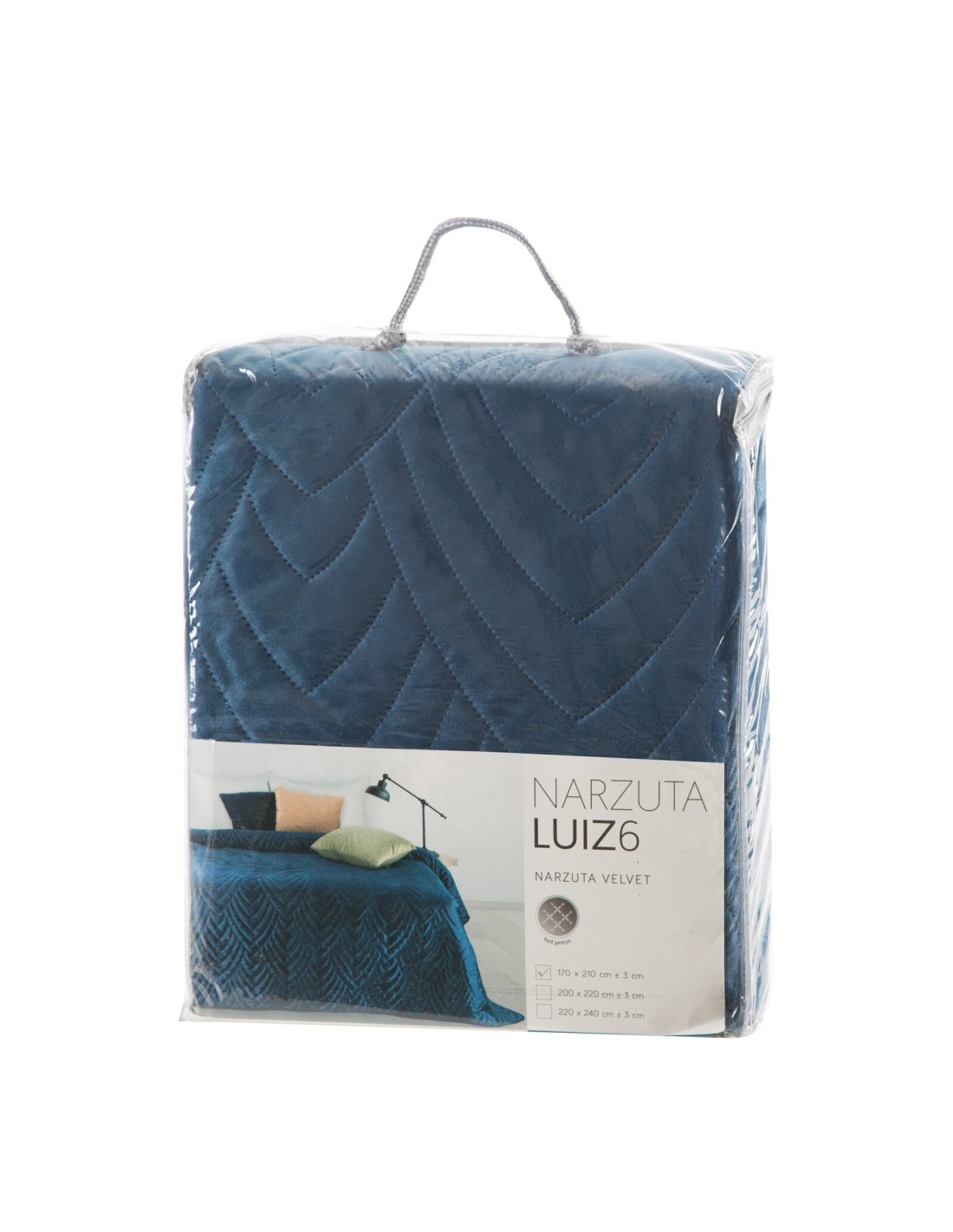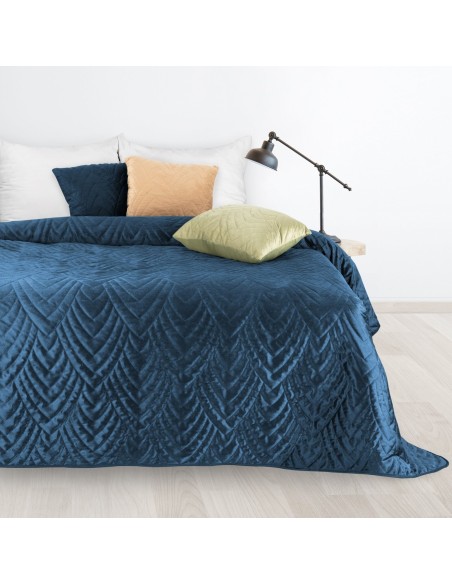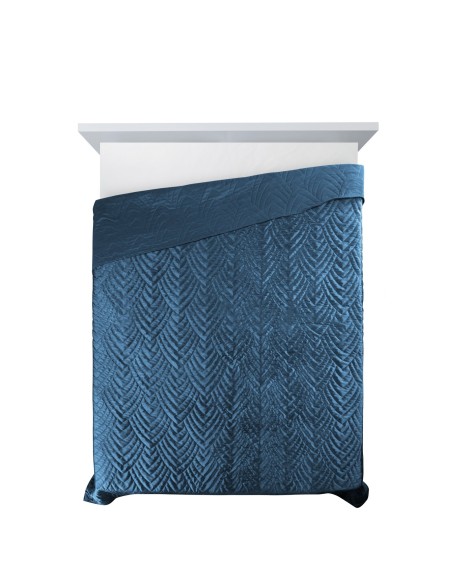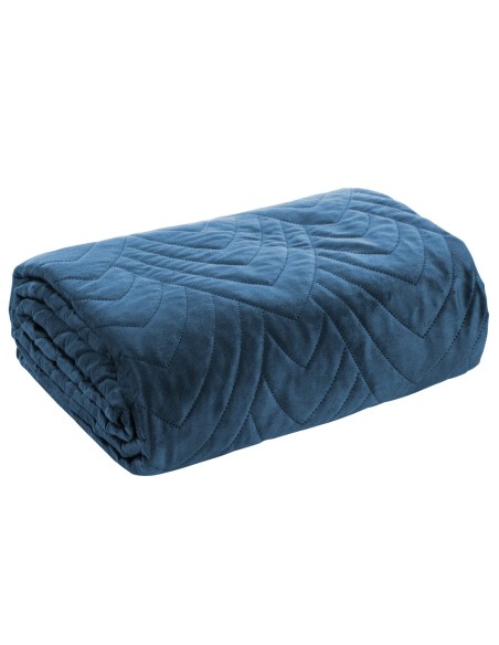 Narzuta welurowa,wykonana metodą hot press szerokość: 170 cm, długość: 210 cm, kolor: granatowy, Gramatura: 150+65+100 GSM, Skład: 100% poliester