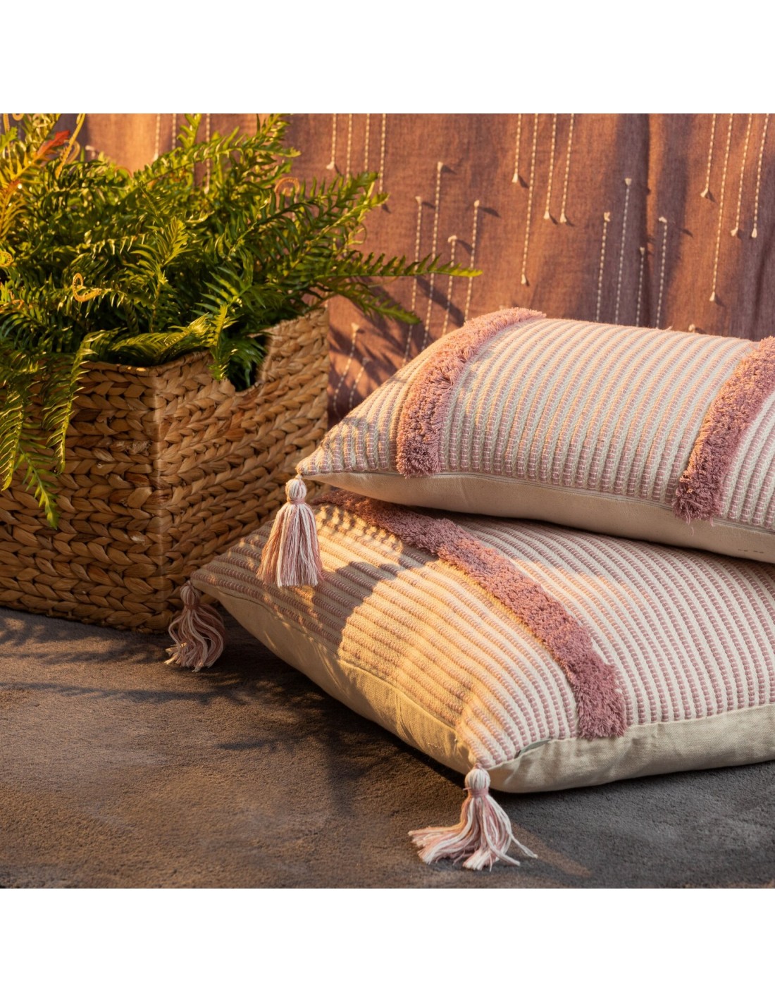 Poszewka dekoracyjna bawełniana z pomponami szerokość: 60 cm, długość: 60 cm, kolor: różowy, Gramatura: 430gsm GSM, Skład: 100% poliester