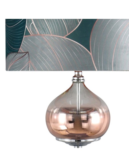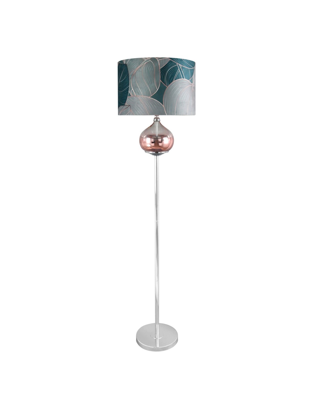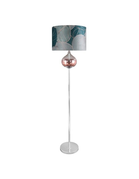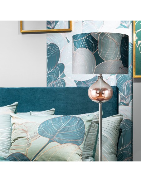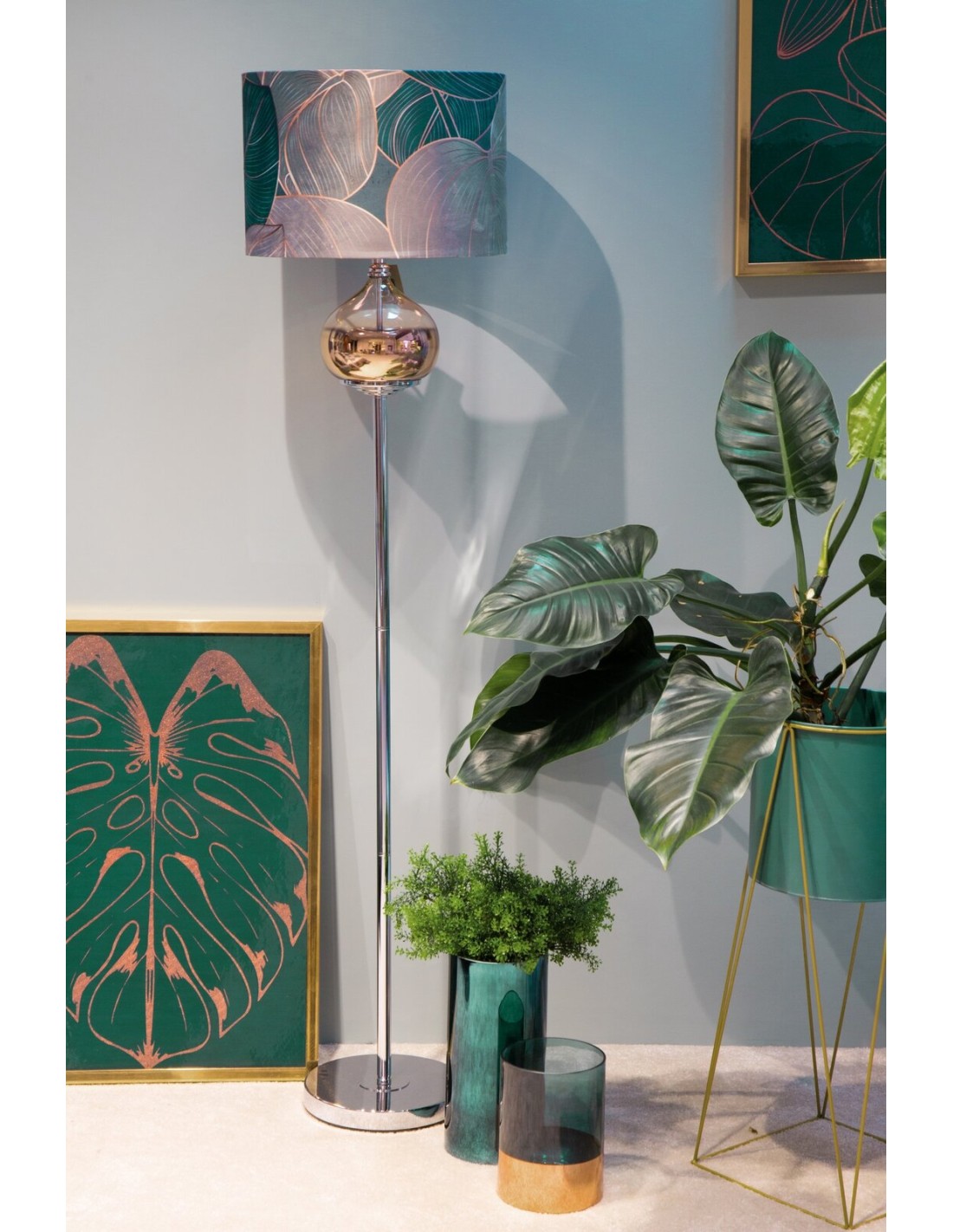 Lampa dekoracyjna, stojąca, z welwetowym abażurem szerokość: fi 43 cm, długość: 157 cm, kolor: szałwiowy, Skład: lampa: żelazo, szkło; abażur: poliester , Zasilanie: CE 220-240V 50HZ , Żarowka: 1 X E27 MAX 100W , Klasa energetyczna: A-G