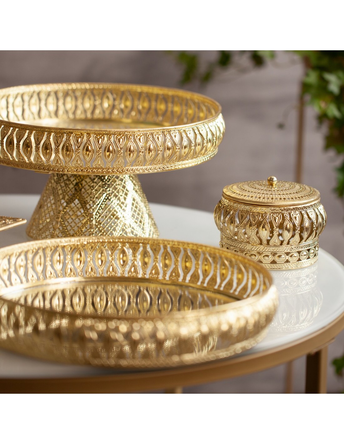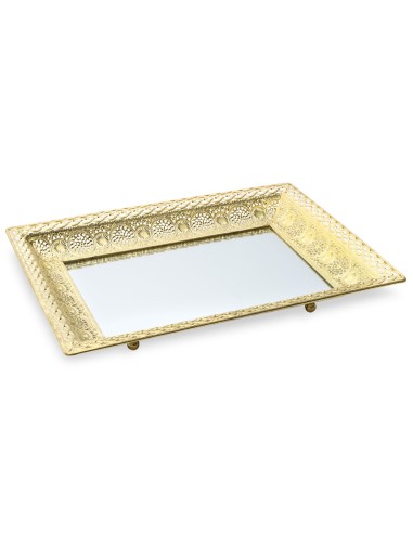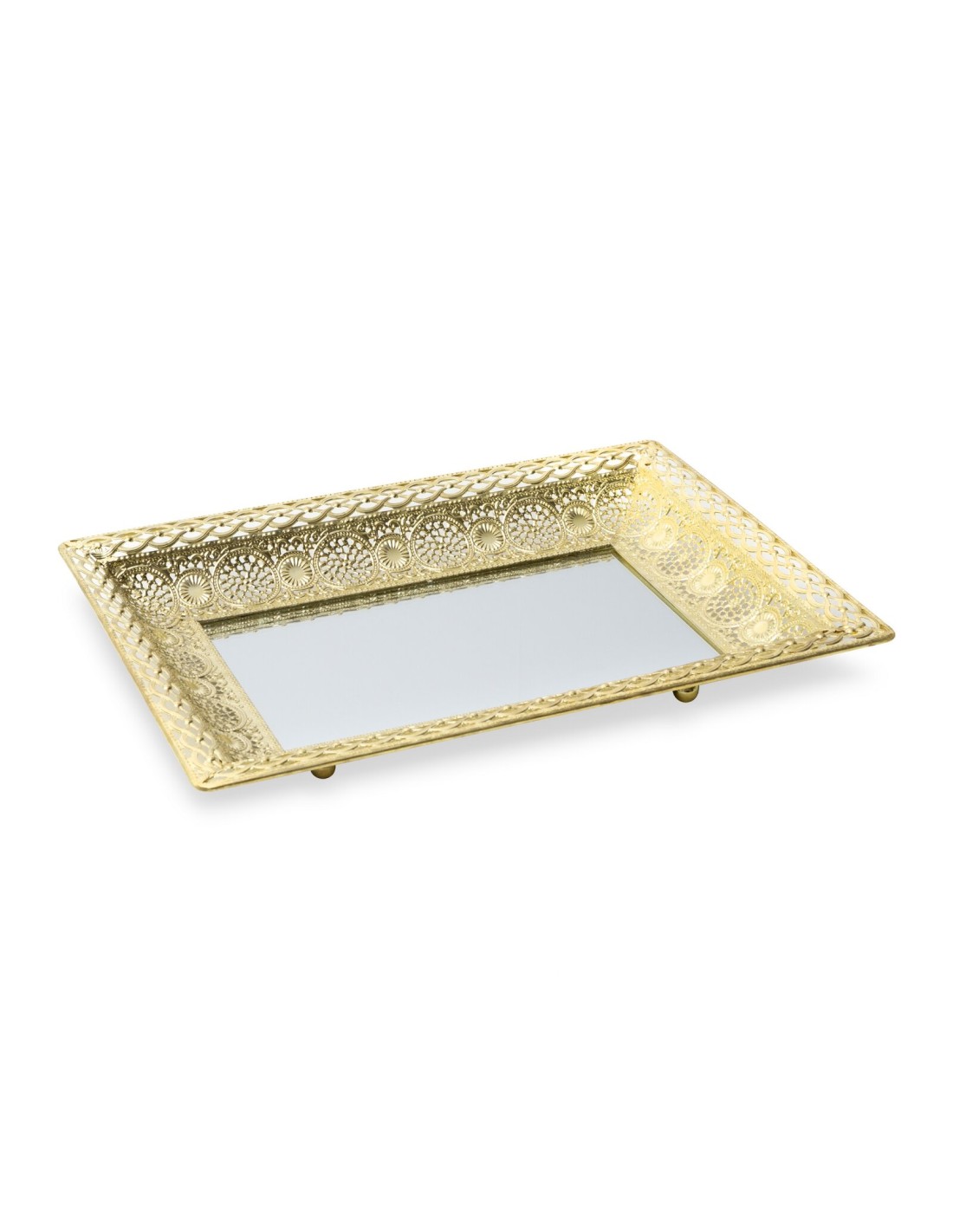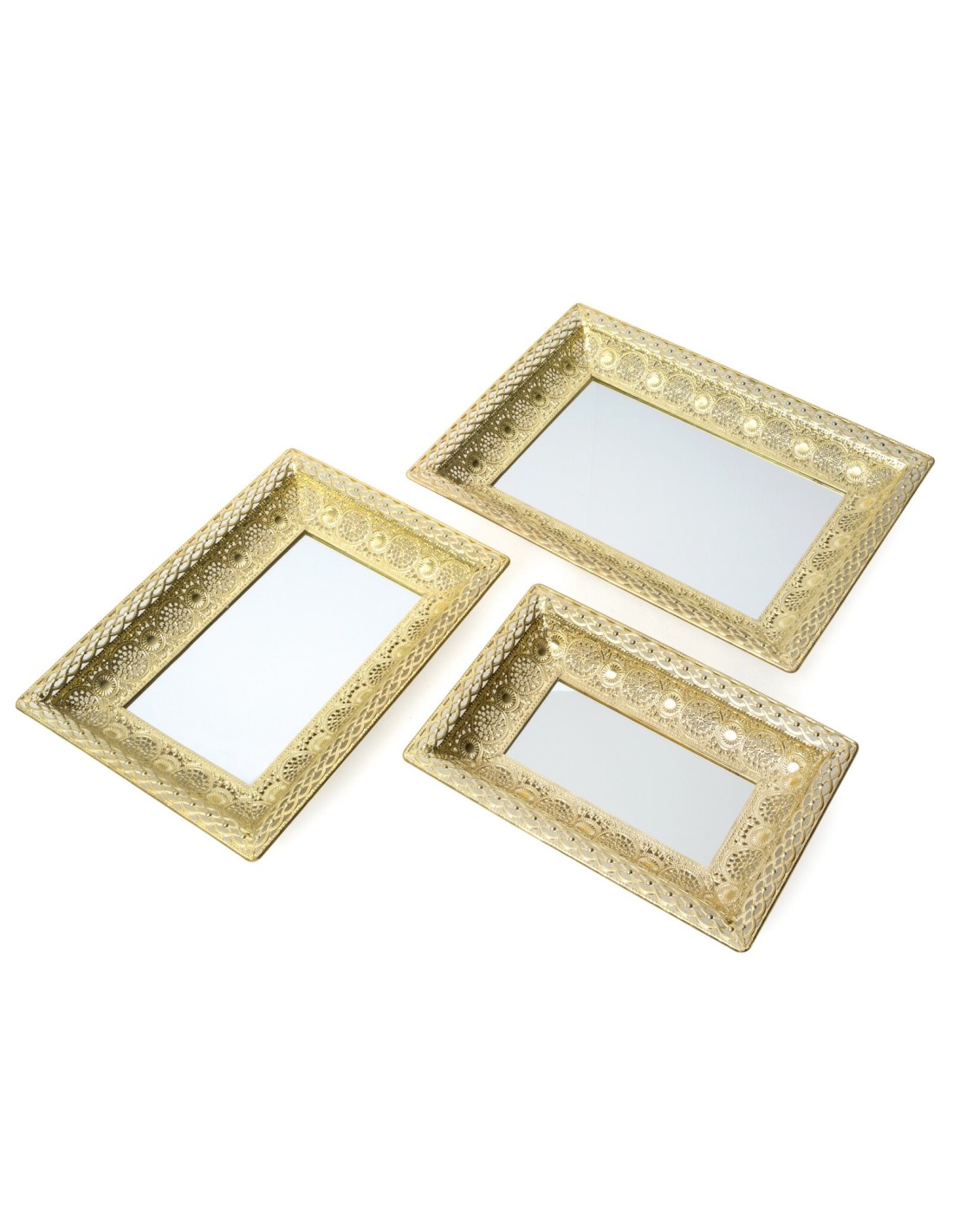 Komplet tacek dekoracyjnych z lustrzanym dnem szerokość: 40 cm, długość: 30 cm, kolor: złoty, Skład: żelazo, szkło