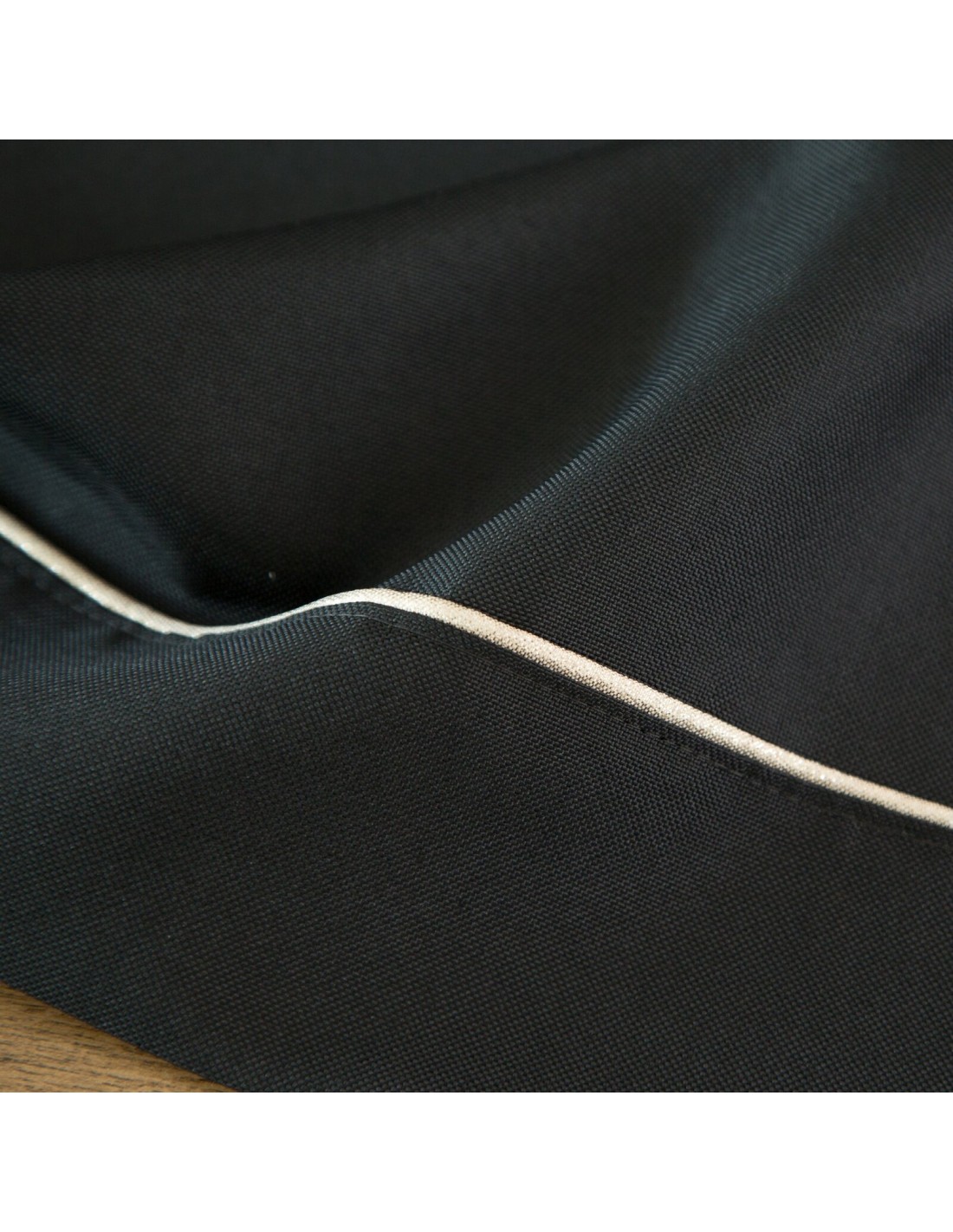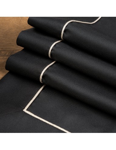 Bieżnik z srebrną lamówką szerokość: 40 cm, długość: 180 cm, kolor: czarny, Gramatura: 190 GSM, Skład: 100% poliester