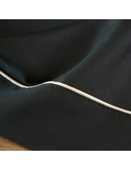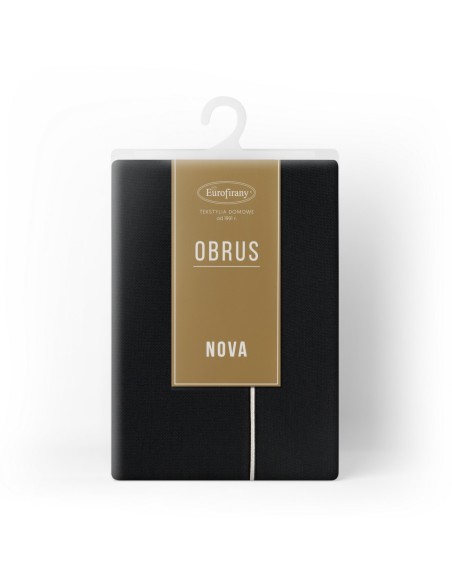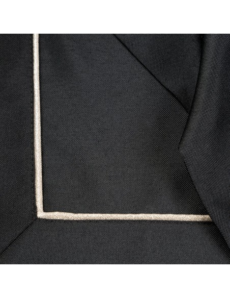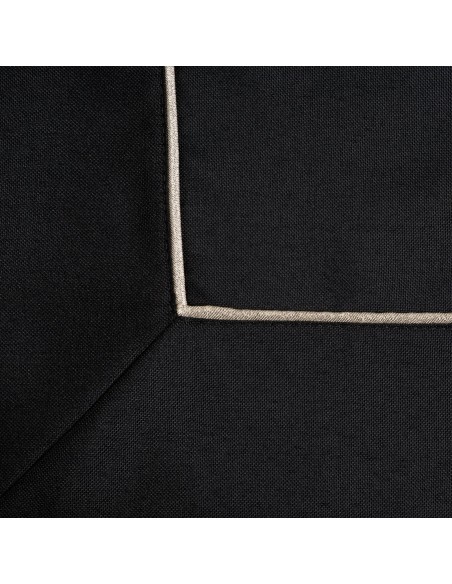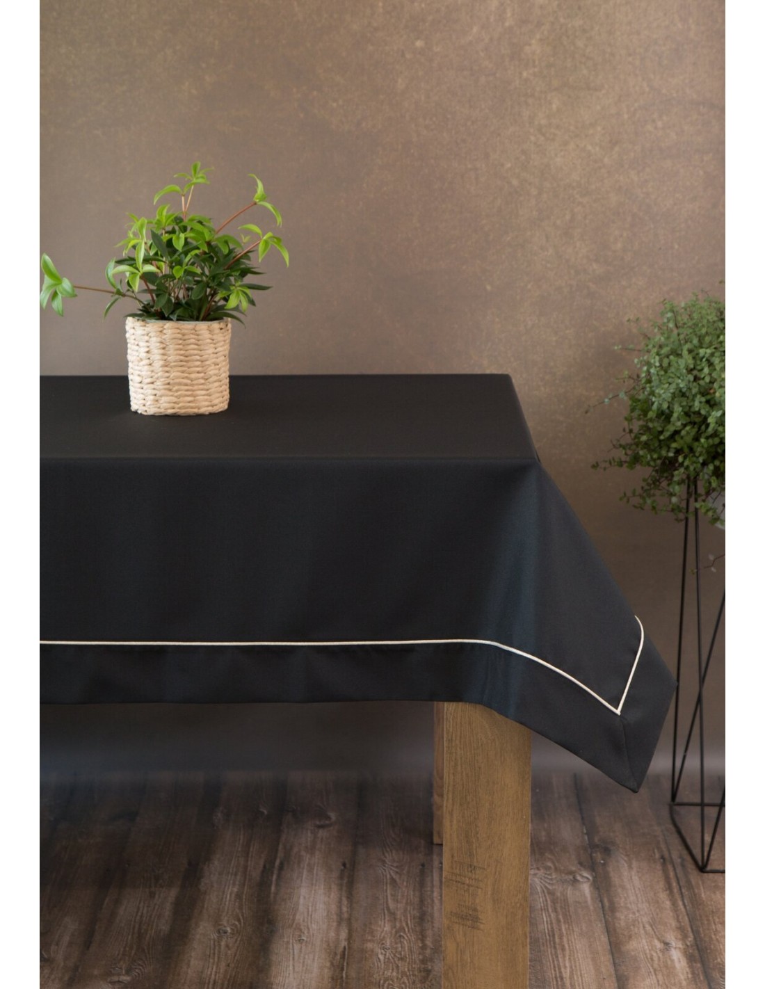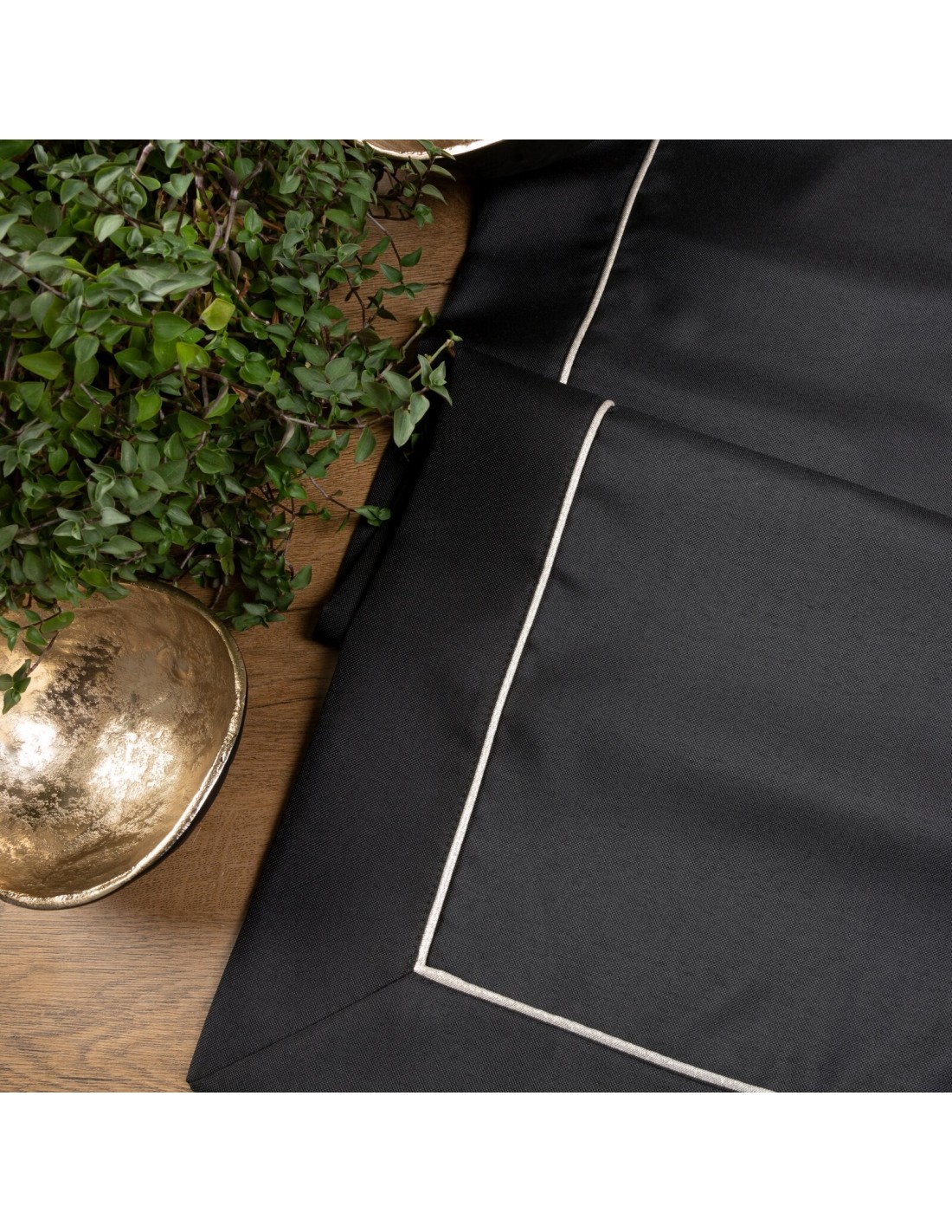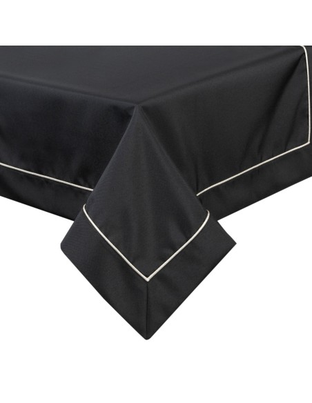 Obrus z srebrną lamówką szerokość: 145 cm, długość: 300 cm, kolor: czarny, Gramatura: 190 GSM, Skład: 100% poliester