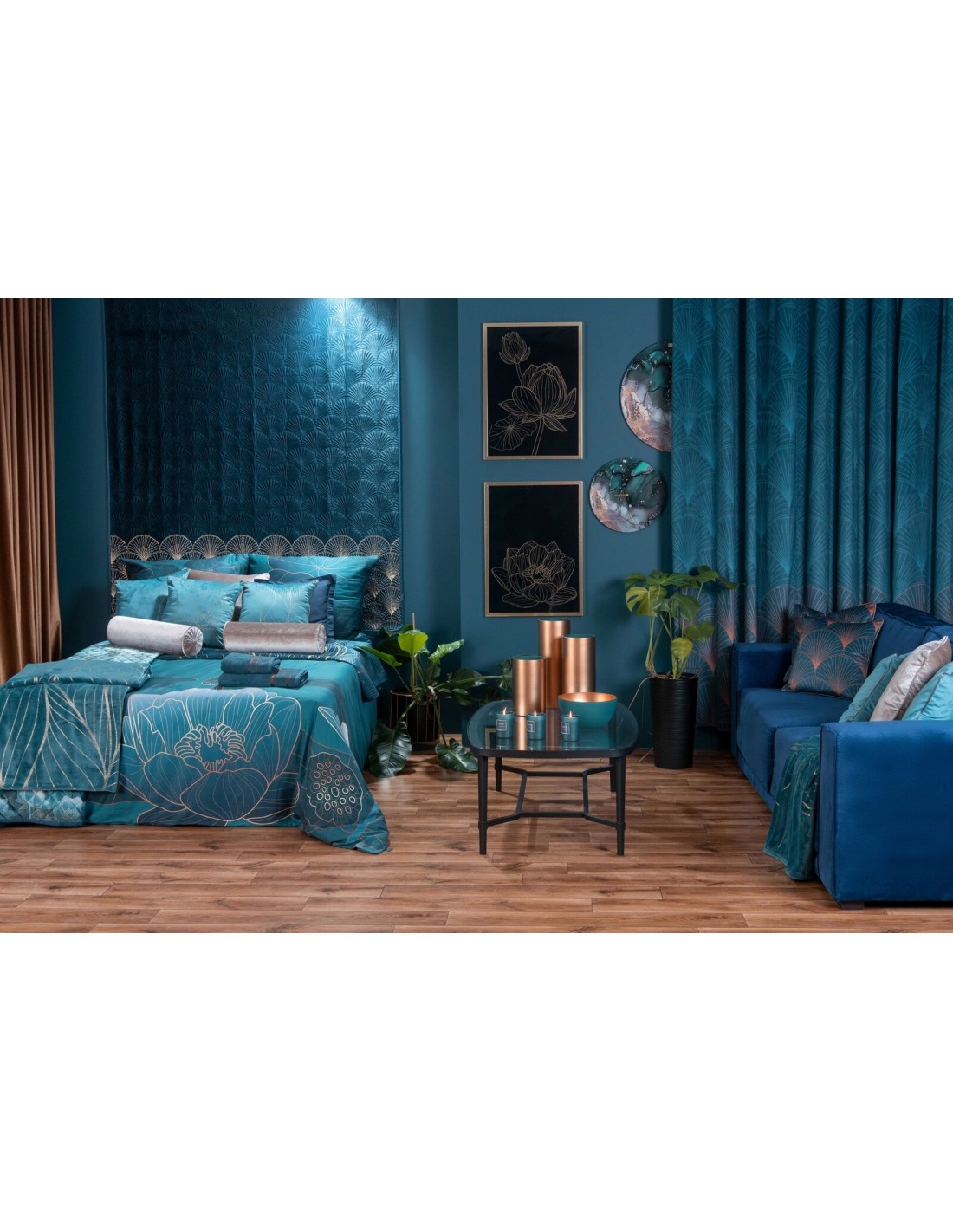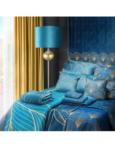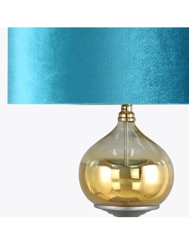 Lampa dekoracyjna, stojąca, z welwetowym abażurem szerokość: fi 43 cm, długość: 157 cm, kolor: turkusowy, Skład: lampa: żelazo, szkło; abażur: poliester , Zasilanie: CE 220-240V 50HZ , Żarowka: 1 X E27 MAX 100W , Klasa energetyczna: A-G