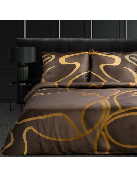Komplet pościeli z naturalnego włókna tencel z nadrukiem panelowym szerokość: 160 cm, długość: 200 cm, kolor: brązowy, Gramatura: 125 GSM, Skład: 60% lyocell (tencel), 40% bawełna
