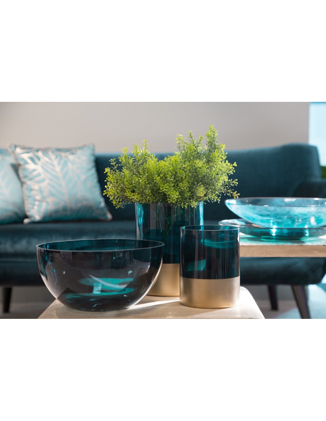 świecznik dekoracyjny szerokość: fi 15 cm, długość: 20 cm, kolor: turkusowy, Skład: 100% szkło